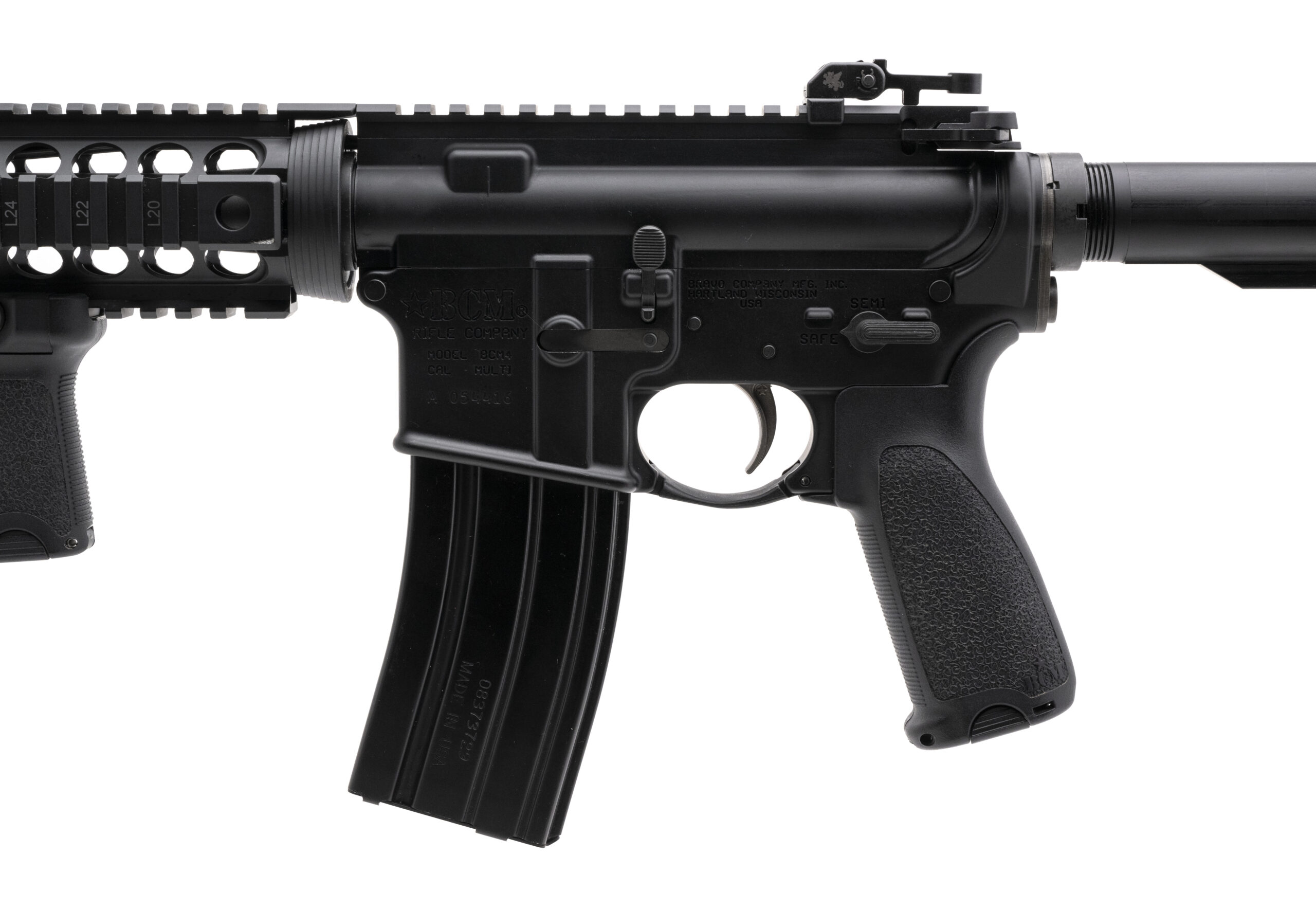 SN: A054416. Modern production 5.56 NATO with an 14.5" Pinned and Welded Barrel with Flash Hider. Bore is bright with excellent rifling. Semi-Auto Rifle with a Midwest Quad Rail and BCM Foregrip. Finish is in very good condition with slight wear present through out the handguard. Synthetic Stock and grip is in very good condition with slight handling wear. Overall condition is very good.