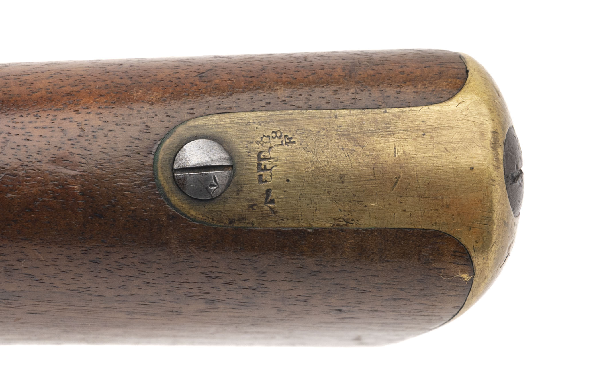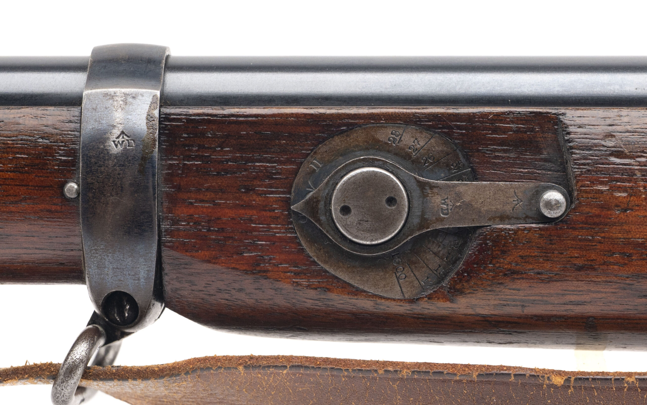 Serial No. 7580, manufactured 1896, .303 British, 30" round barrel. Bore is good, exhibiting strong rifling consistent with careful long-term storage. Rifle remains in very good overall condition, with the stock showing light handling impressions and a crisp 1902-dated cartouche. A significant amount of the original blue finish remains intact. Bolt is non-matching, a common occurrence on early Long Lees due to arsenal service and component replacement over their lengthy careers. Action is smooth and functions correctly. A handsome and well-preserved example of an early Enfield Long Lee Mk I, retaining strong markings and desirable original finish. Rifle is also equipped with a B.S.A optical sight.