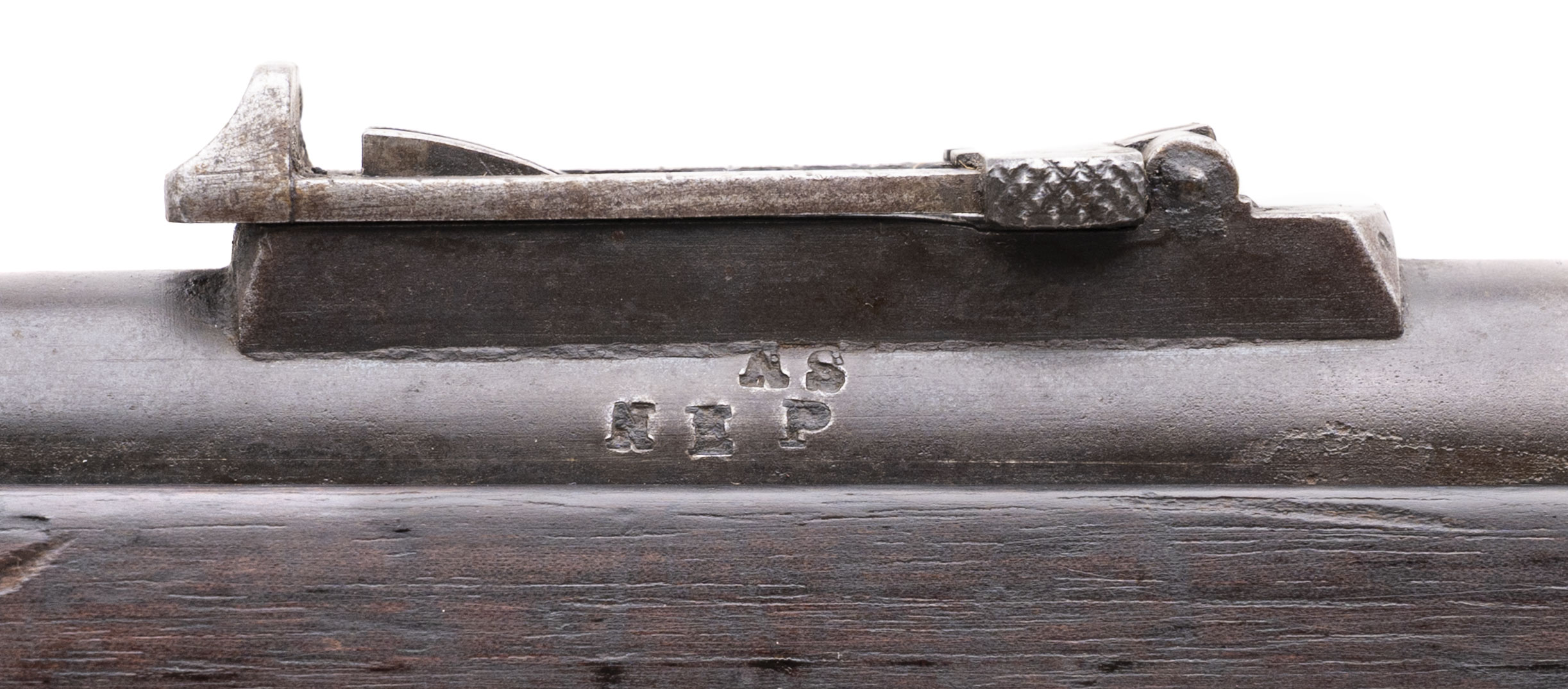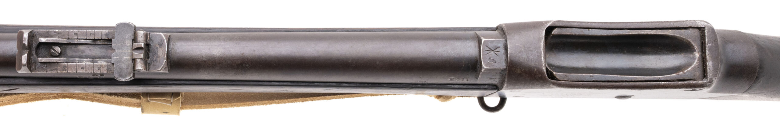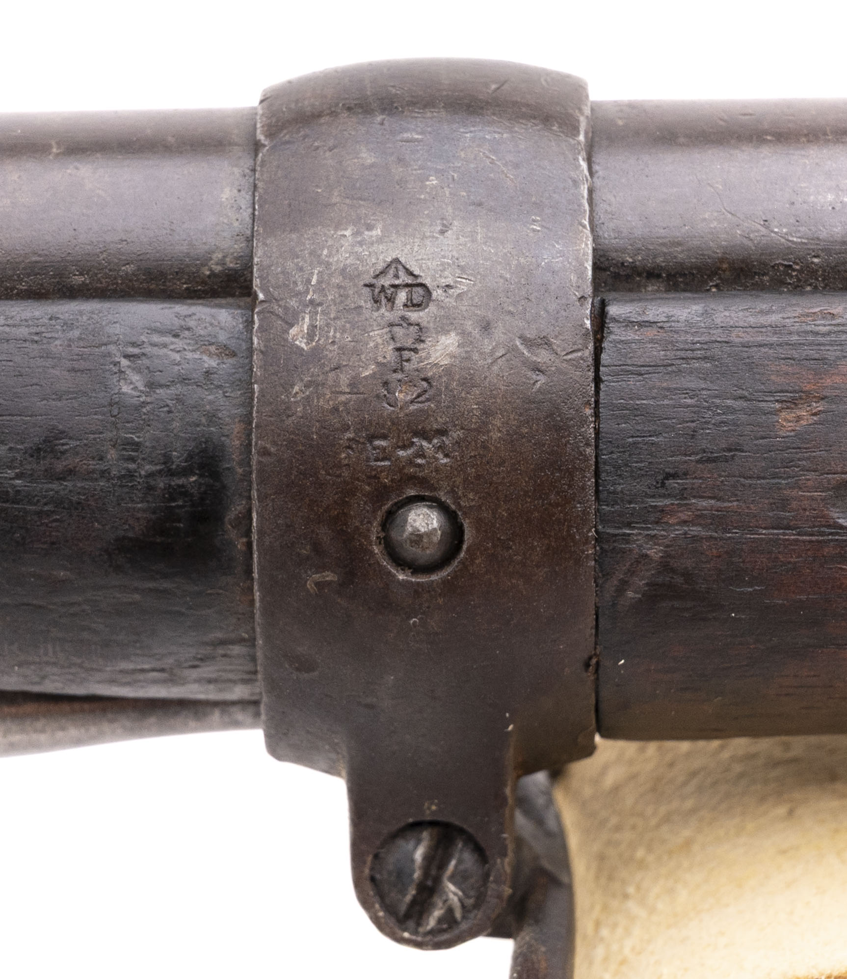 Serial No. B711, manufactured in 1887, chambered in .577/450 with a 33.5" round barrel. The bore is very good, retaining sharp and well-defined rifling. Metal surfaces have aged to a smooth brown patina, giving the rifle an attractive and honest appearance. Factory markings on the right side of the receiver remain sharp and clearly legible. The stock is in very good condition, showing only light handling impressions consistent with age and service. Overall presentation is well preserved for a late-Victorian service rifle. Action is smooth and functions