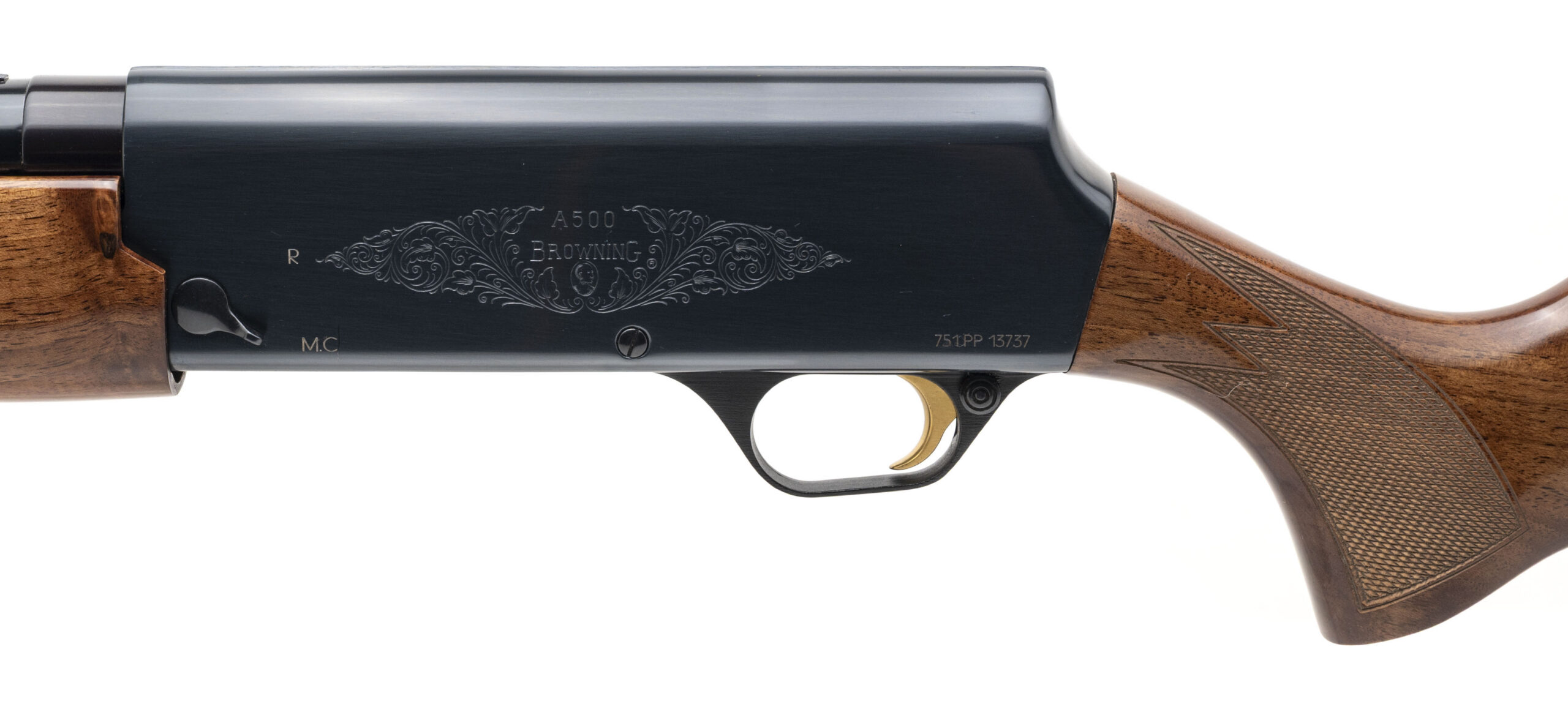SN: 751PP13737. Made in 1988, 12 gauge with a 30" vent rib barrel w/removable choke chambered for 2 3/4" & 3" shells. Bore is excellent. Belgian made semi-auto field shotgun with engraved blued finish, and checkered wood forend & stock with a 14.5" LOP. Finish shows light handling marks. Overall condition is very good. Includes additional chokes, and original box.