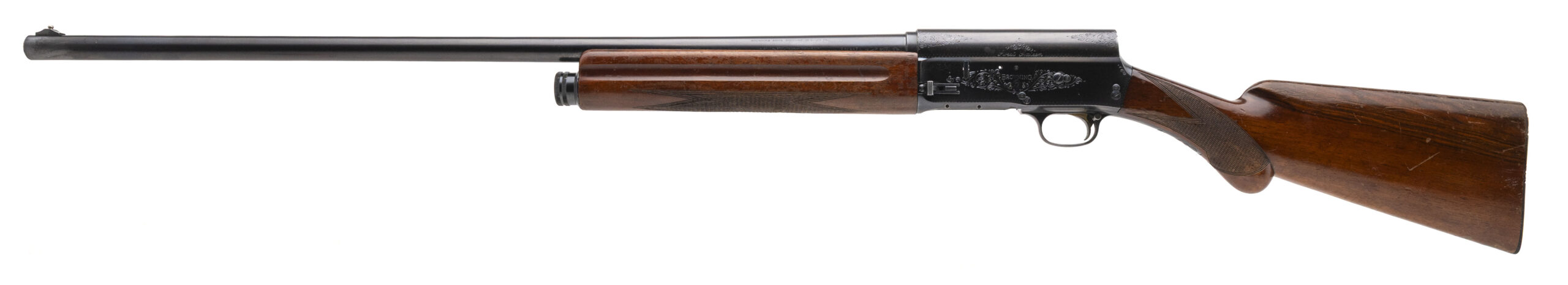 SN: A5629 made circa 1958. Semi-auto 16 gauge shotgun with a 27.5" round barrel with matted top, 2 3/4" chamber and fixed full choke. Blued metal finish and checkered walnut furniture with a 14 3/8" LOP to the original horn FN butt plate. Furniture has heavier wear and handling marks but no visible cracks, metal finish has some light wear but is in very good condition and the bore is excellent.