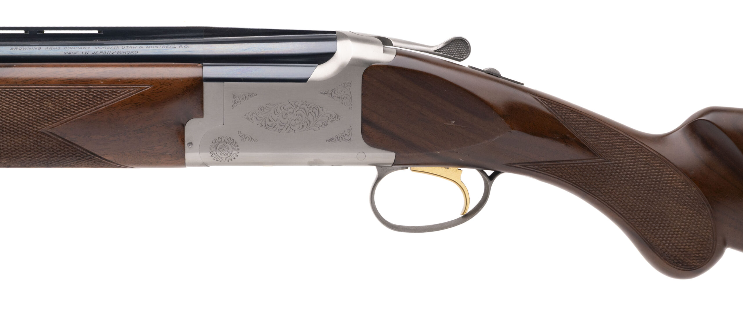 SN: 07539MZ131 made in Japan modern production 12 gauge over under shotgun with 28” vent rib barrels with 3” chambers and screw in chokes. Engraved receiver with gold plated single selective trigger, ejectors and a manual safety. Checkered walnut furniture with a 14.25” LOP to the original butt plate. Some light handling marks but overall in very good condition with excellent bores.