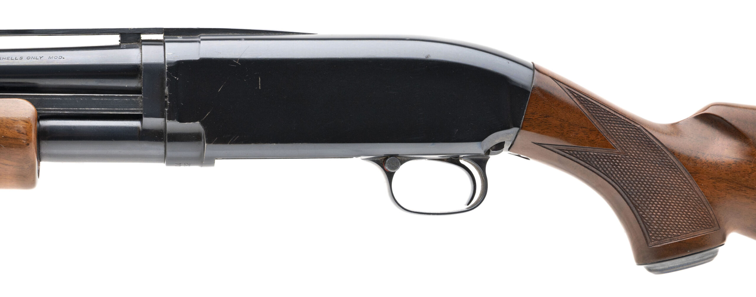 SN: 05444PN832 modern production made in Japan. 20 gauge takedown pump action field shotgun with a 26" vent rib barrel2 3/4" chamber and fixed MOD choke. Blued metal finish with checkered walnut furniture with a 14" LOP to the original butt plate and a blued steel grip cap. Some handling marks on the furniture, scuffs on the receiver and some light muzzle wear, no structural or mechanical issues, overall in good solid condition with an excellent bore.