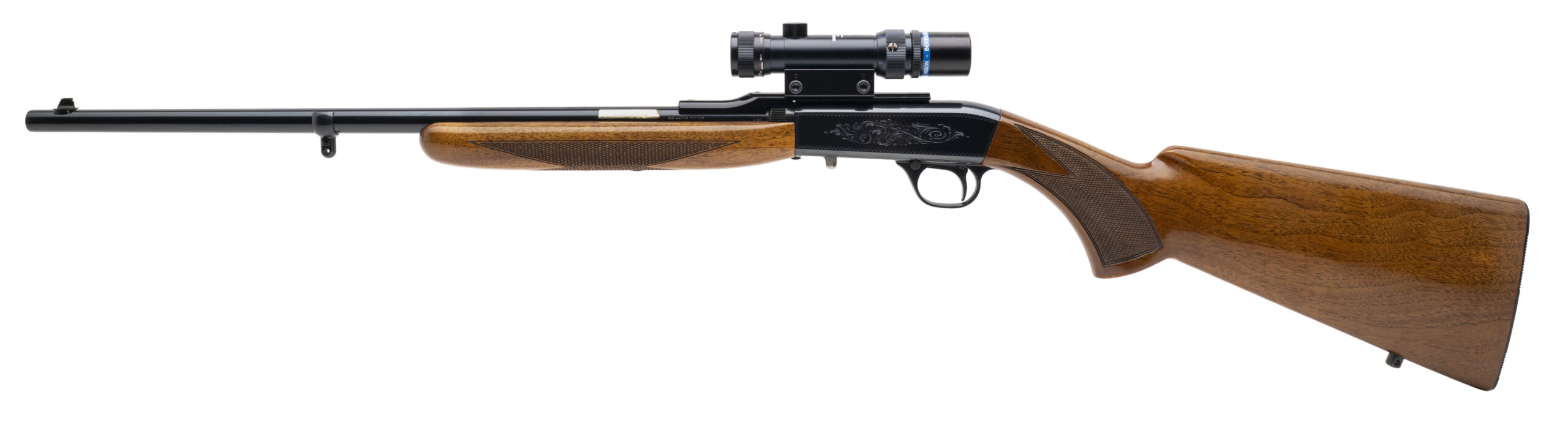 SN: 70T38750. Made in 1970, .22LR with a 19" barrel. Bore is excellent. Belgian made semi-auto takedown rifle with a Beeman SS3 1.5-4X scope, blued finish, and checkered wood stock. Minor marks to finish and stock. Overall condition is very good.