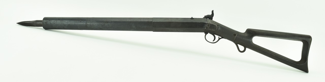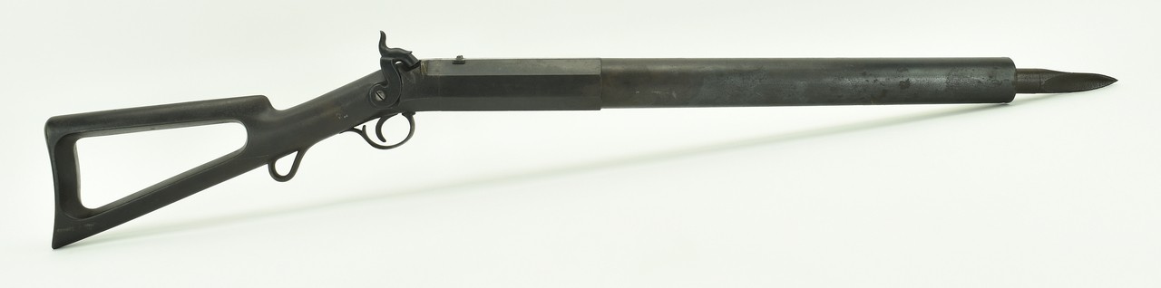 C.C. Brand Whaling Gun. 1 1/8” bore, 22 ½” barrel and 38 ½” overall length. This gun comes with its Bomb Lance. These guns were made in Norwich, Connecticut during the 1850’s to 1860’s. Ramrod pipe is missing.