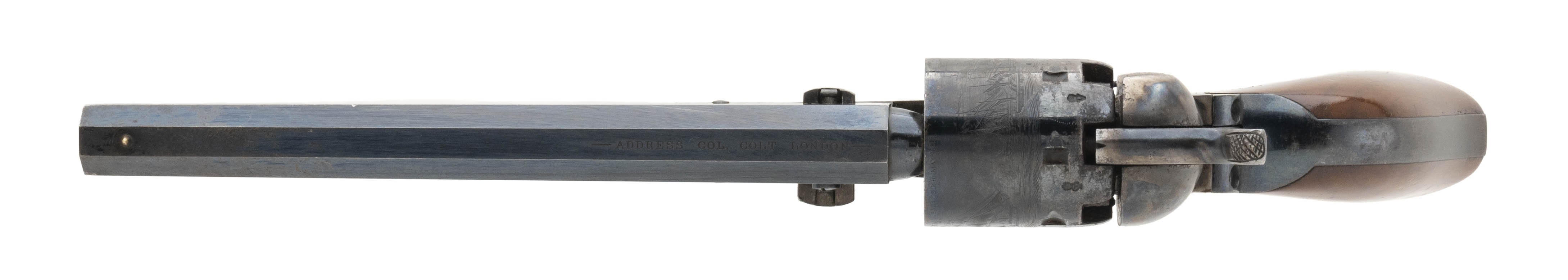 Serial number 42115. Made in 1856. 36 caliber with a 7 ½” barrel. Very fine all original finish with 85% of the original blue on the barrel. The frame has most of the original bright case colors. Grips are excellent. Case has very fine accessories.
