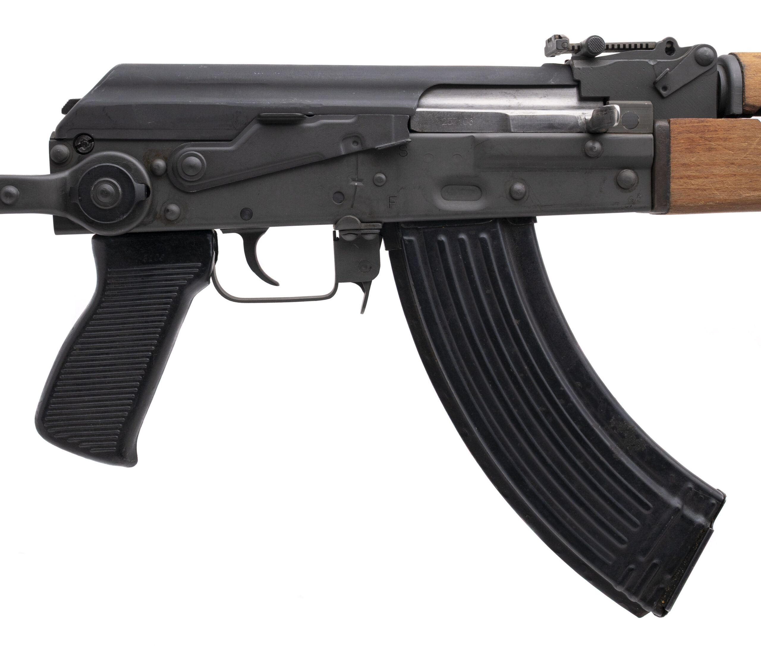 SN: M70AB10545. Modern production, 7.62x39mm with a 16" barrel. Bore is very good. Yugo pattern AK rifle with an underfolding stock. This rifle was assembled in the U.S. on a surplus Yugoslavian Zastava AK parts kit. Very good condition overall.