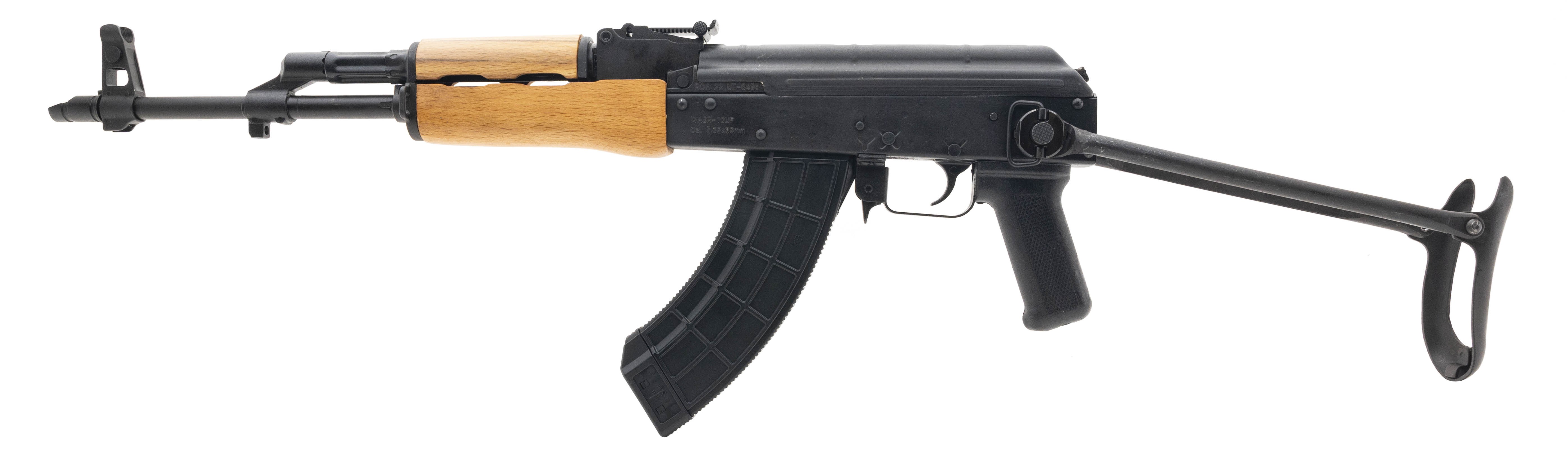 Semi-automatic AK-47 pattern underfolding rifle with a 16.25" barrel, wooden furniture, and a right handed muzzle device. NEW. UPC:787450515994.