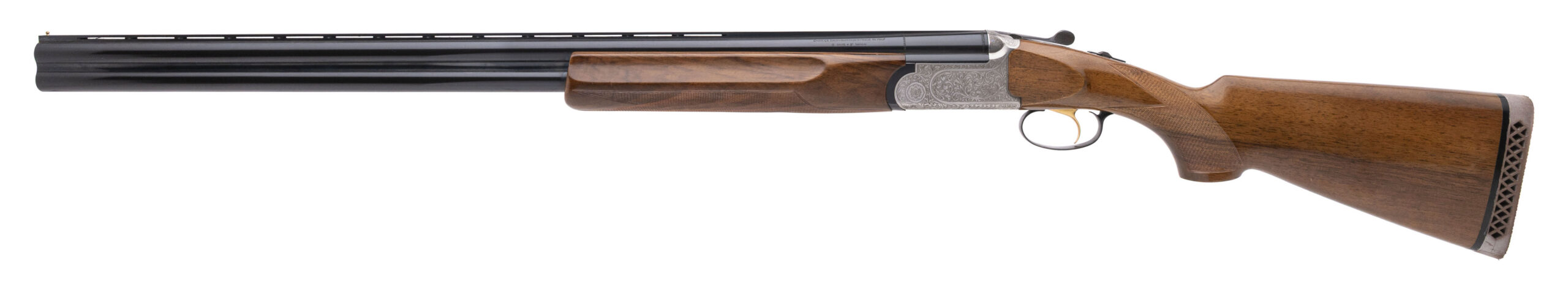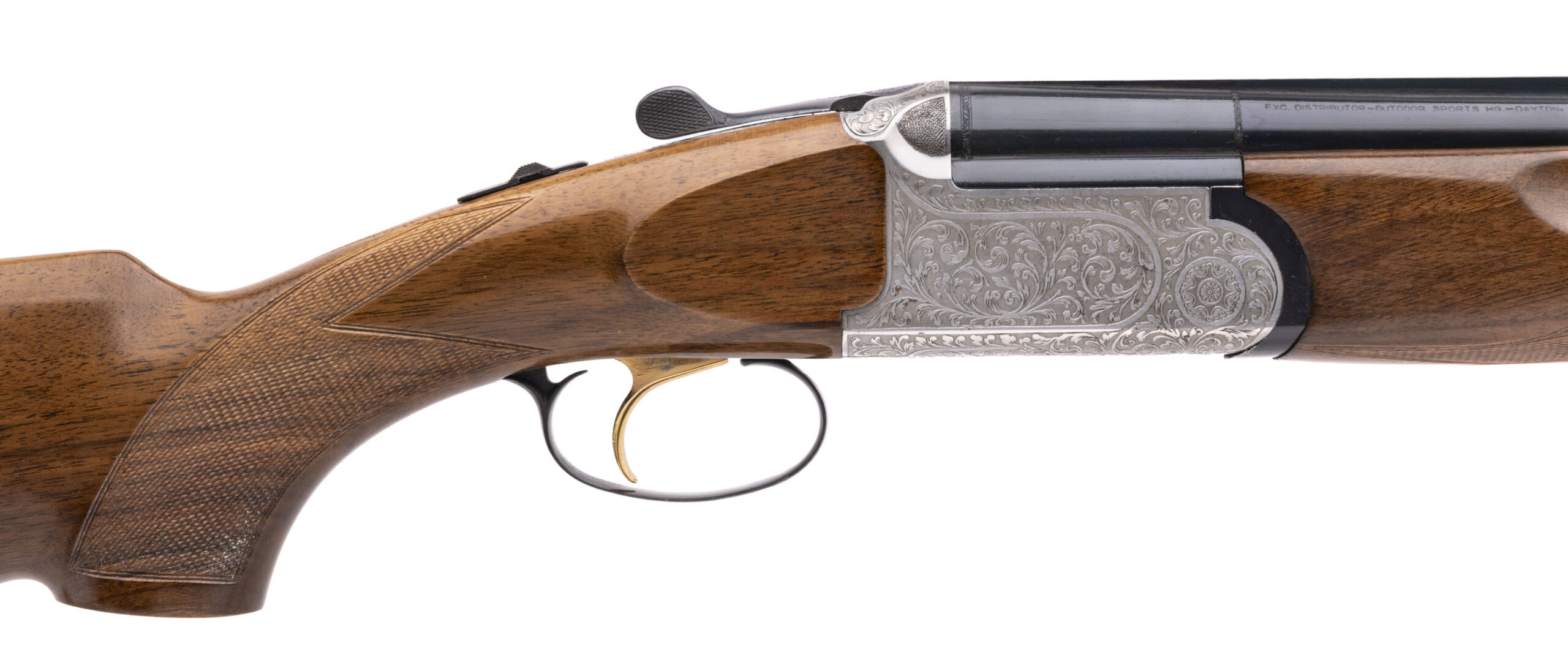 SN: 82406 made circa 1970's. 12 gauge over under sporting shotgun with 30" vent rib blued barrels, 3" chambers and fixed chokes Mod/Full. Coin finish engraved receiver with a gold plated selective single trigger, ejectors and an automatic safety. Deluxe checkered walnut furniture with a 14" LOP to the original recoil pad. Overall in very good condition with excellent bores.