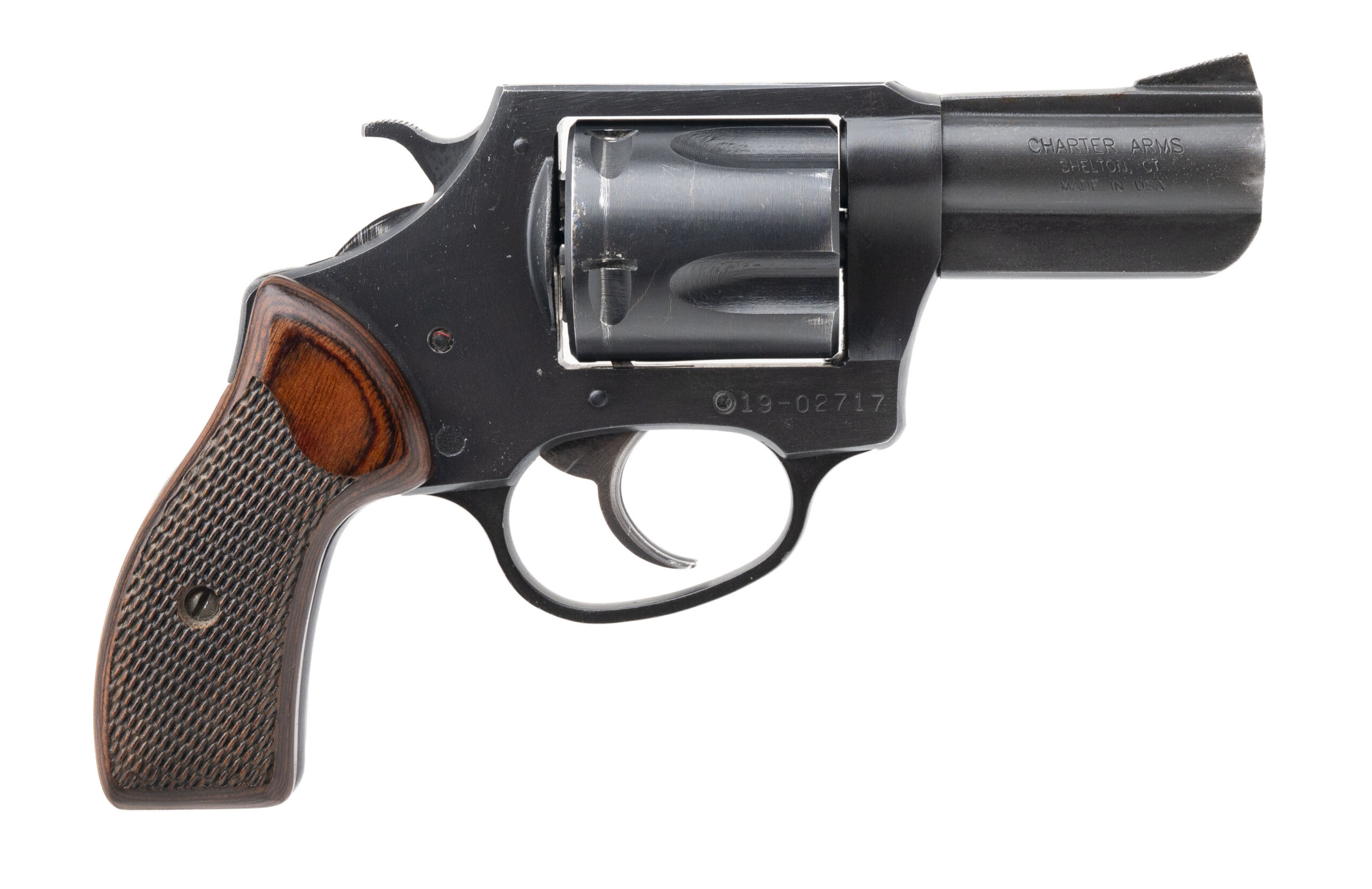 SN: 19-02717. 1960s vintage, with a 2.5" barrel. Bore is very good. Double-action steel frame revolver with a 5rd cylinder, matte black finish, and checkered wood grips. Frame shows holster wear and minor handling marks throughout. Overall condition is very good.