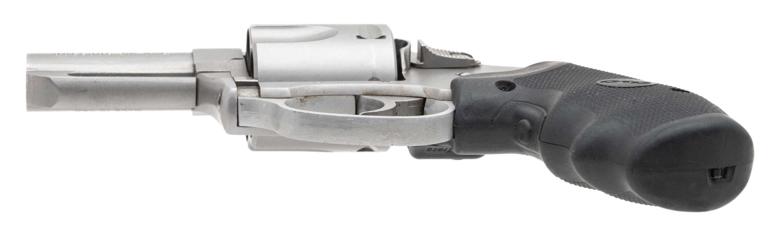 SN: 13-14466. Modern production, .44 SPL. with a 2.5" barrel. Bore is very good. Double-action stainless steel frame revolver with a 5rd cylinder, and Crimson Trace laser grip module. Metal shows light marks. Overall condition is very good. Includes Original case.