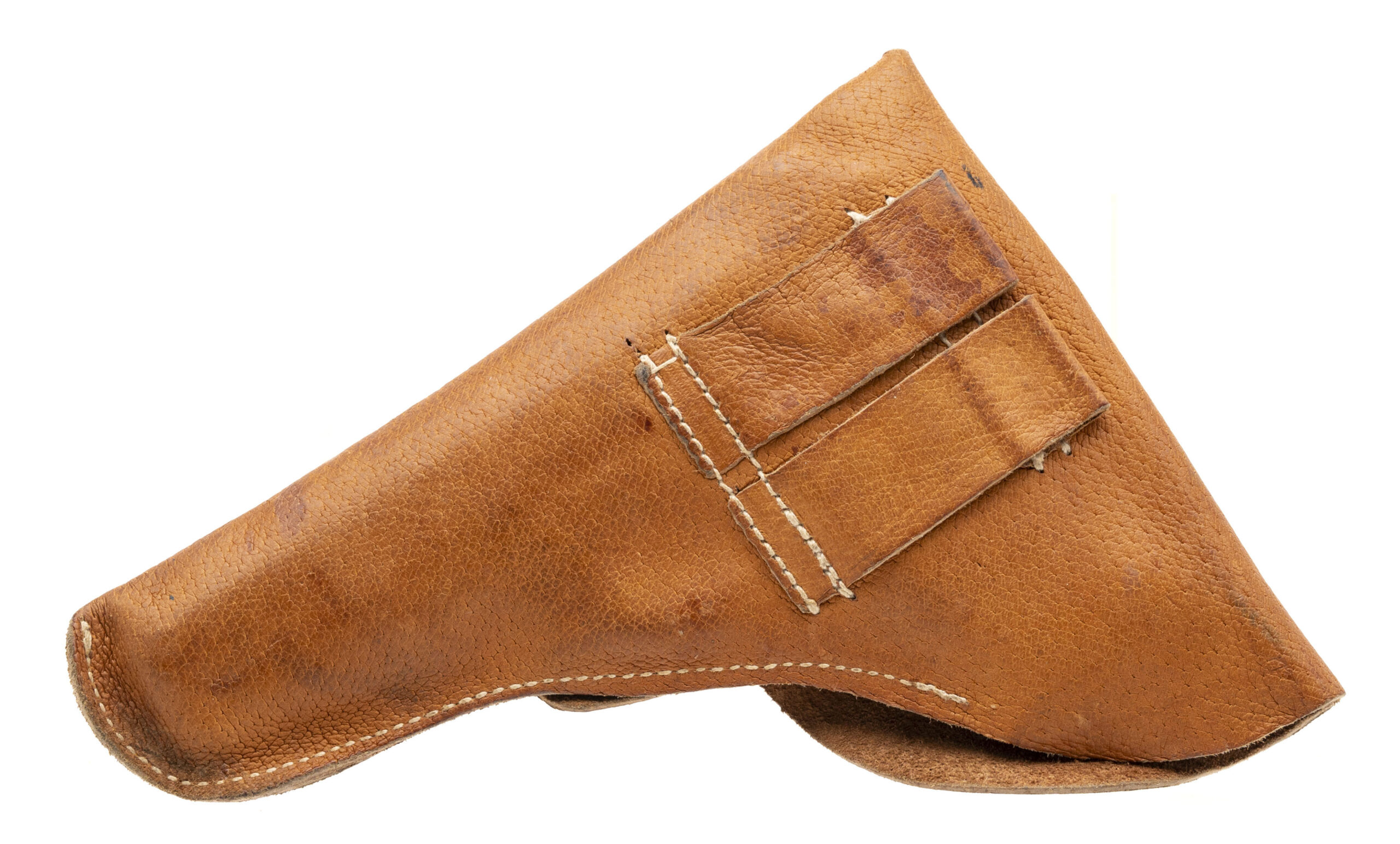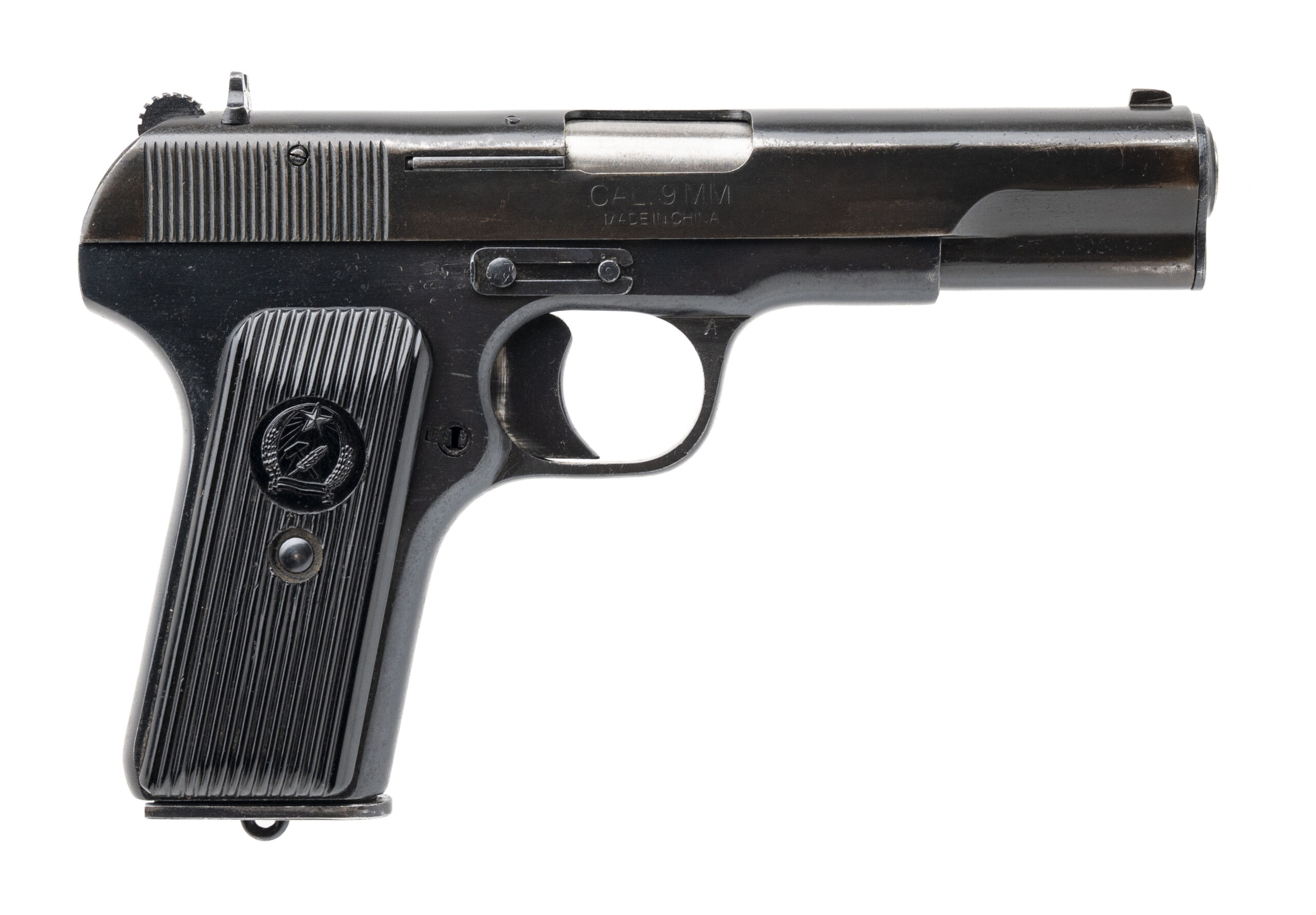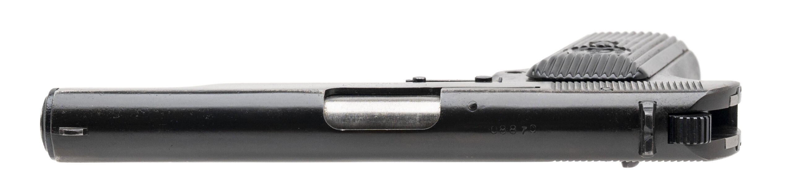 Serial No. 08870, made circa 1990–1995, 9mm, 4 ¾” round barrel. Pistol is in overall very good condition with some light staining visible in scattered areas. Serial numbers are matching throughout. Grips are in excellent condition with no cracks or warping. Action is smooth and functions correctly. Pistol comes complete with a brown leather holster, extra magazine, and cleaning rod. A solid Cold War-era import chambered in a widely available caliber.