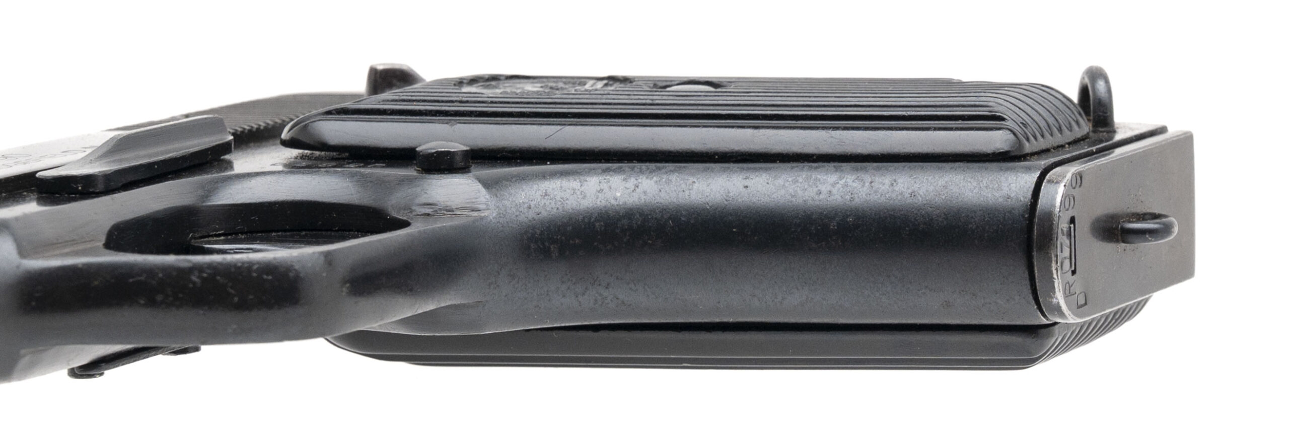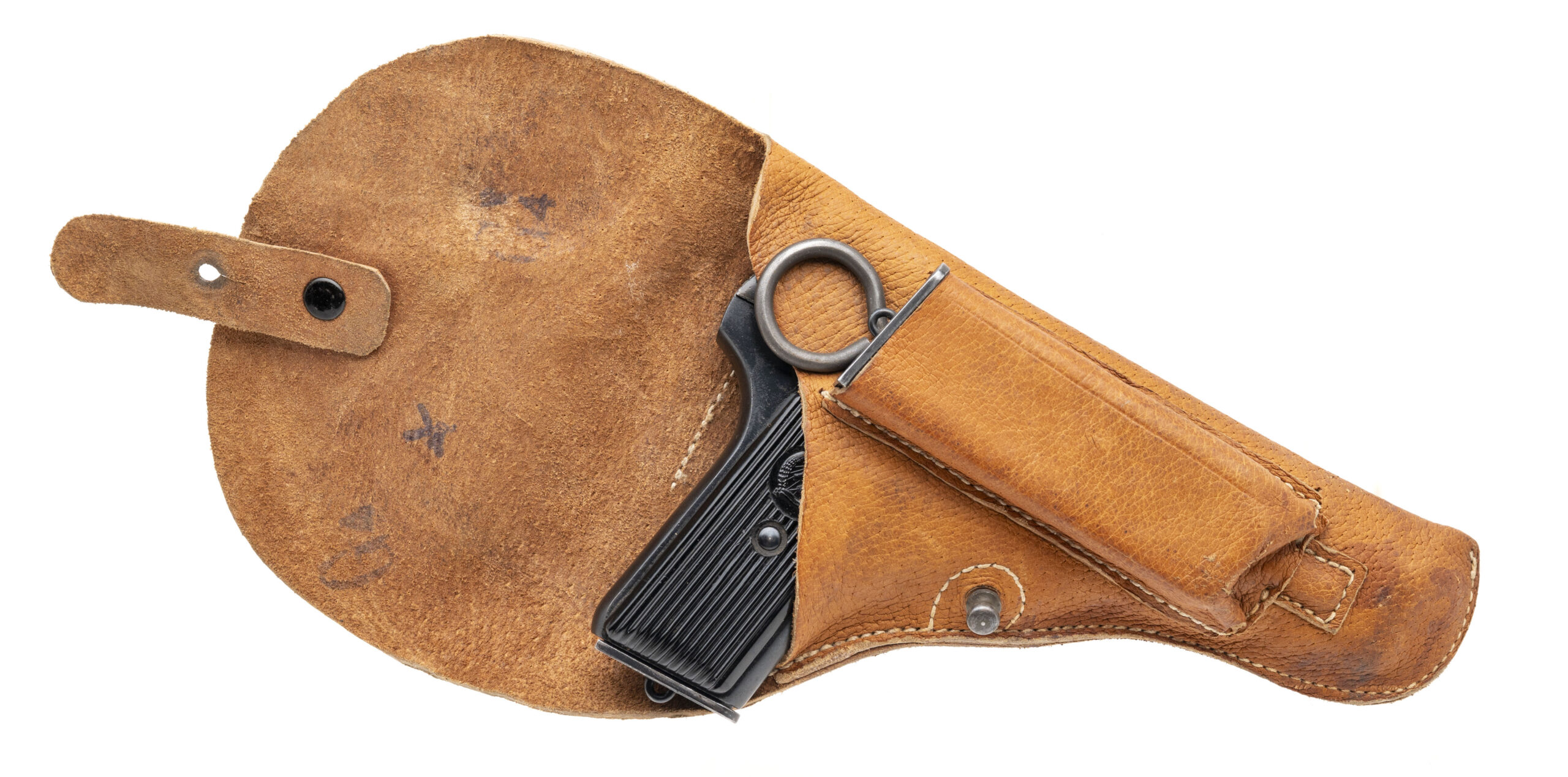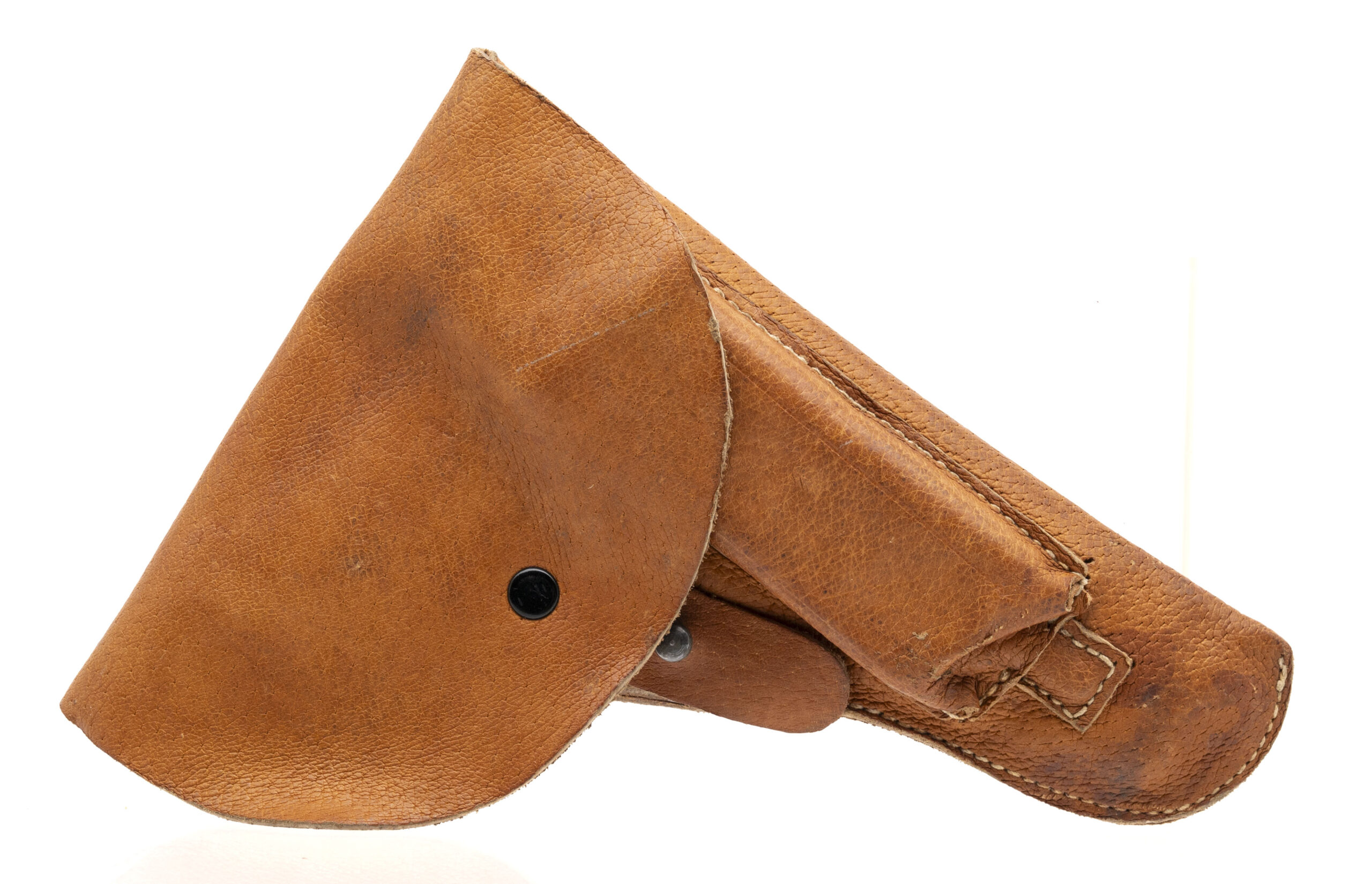 Serial No. 08870, made circa 1990–1995, 9mm, 4 ¾” round barrel. Pistol is in overall very good condition with some light staining visible in scattered areas. Serial numbers are matching throughout. Grips are in excellent condition with no cracks or warping. Action is smooth and functions correctly. Pistol comes complete with a brown leather holster, extra magazine, and cleaning rod. A solid Cold War-era import chambered in a widely available caliber.