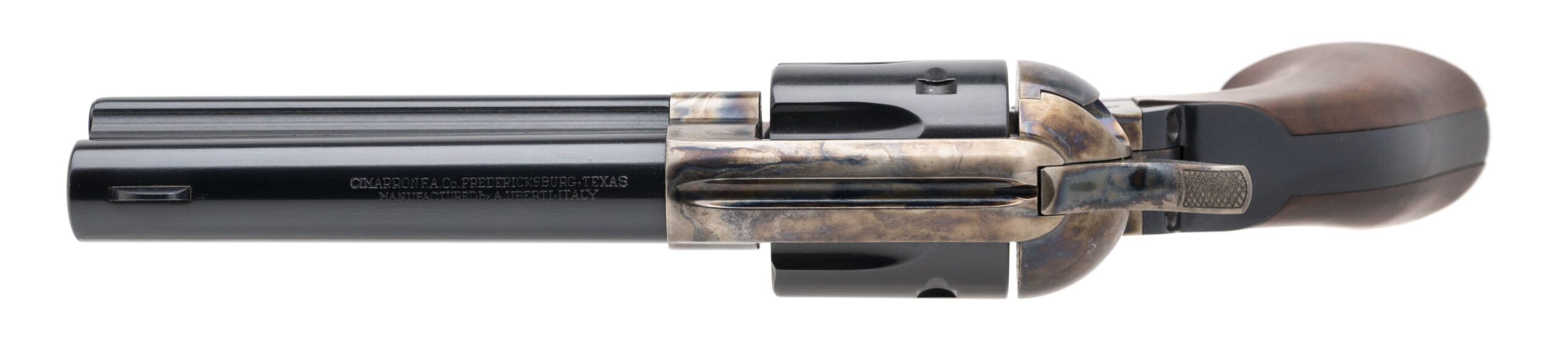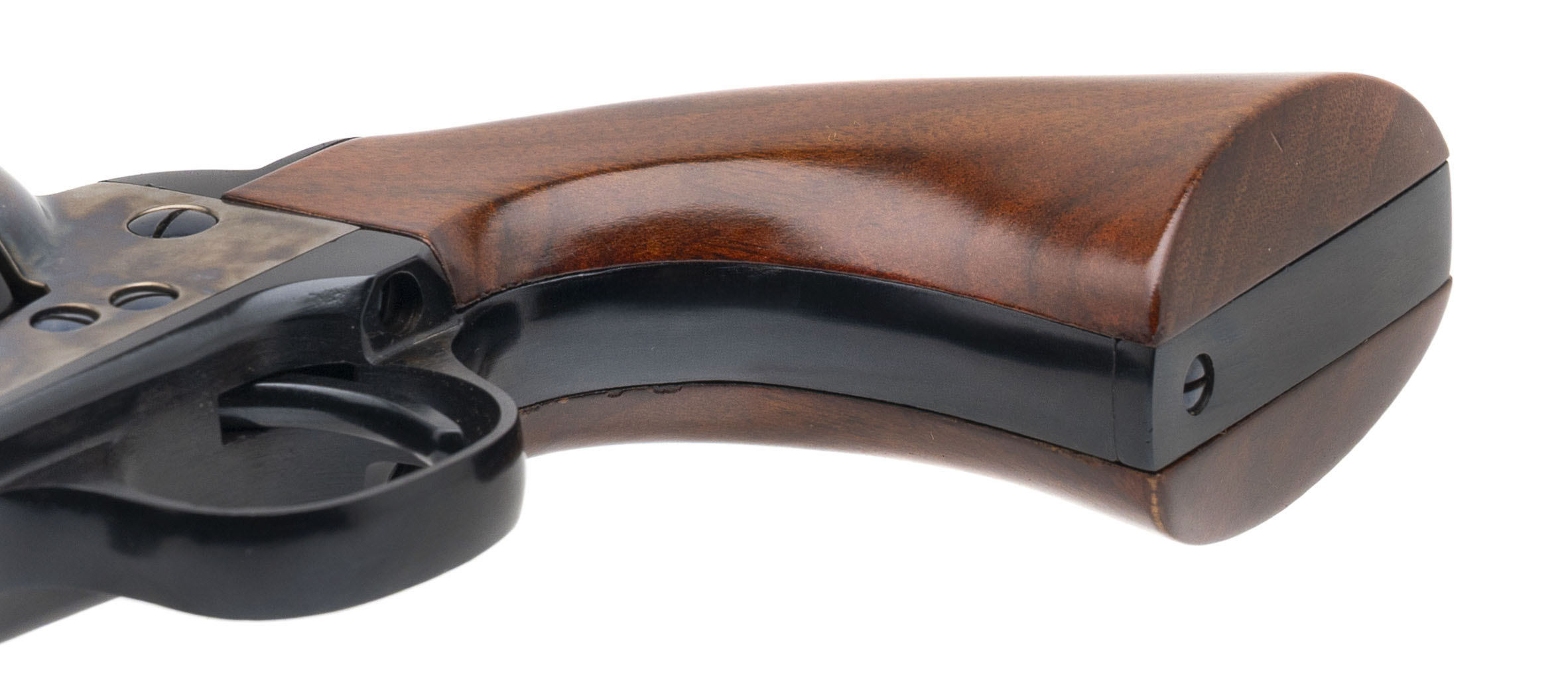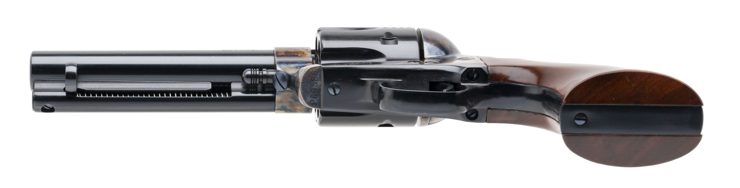 SN: P69586. Modern production, .357 MAG. with a 4.75" barrel. Bore is very good. Modern Italian made single-action only revolver with a bladed front sight, blue finished barrel & 6rd cylinder, color case hardened frame, and wood grips. Finish shows minor handling marks. Includes original box. Overall condition is very good.