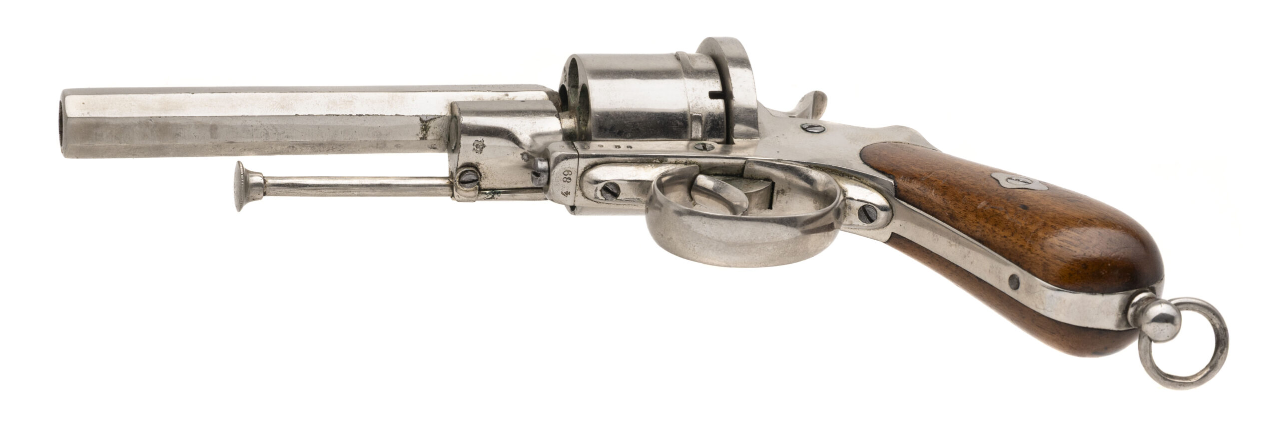Serial number 232056. Made early 1860s. 11mm pinfire cartridge with a 5” barrel. This gun is in excellent condition as refinished. The grips are very good. This model saw use during the civil war.