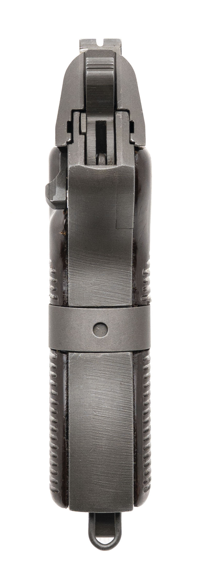 Serial No. FK11644, manufactured in 1954, 7.62x25mm, 4½” round barrel. Pistol is in overall very good condition with light handling and storage marks noted. Frame underside bears import markings. Original checkered grips are in excellent condition. Features a roller-locking short recoil system, a unique design among Cold War service pistols. Includes original brown leather military holster in very good condition, along with cleaning rod and spare magazine.