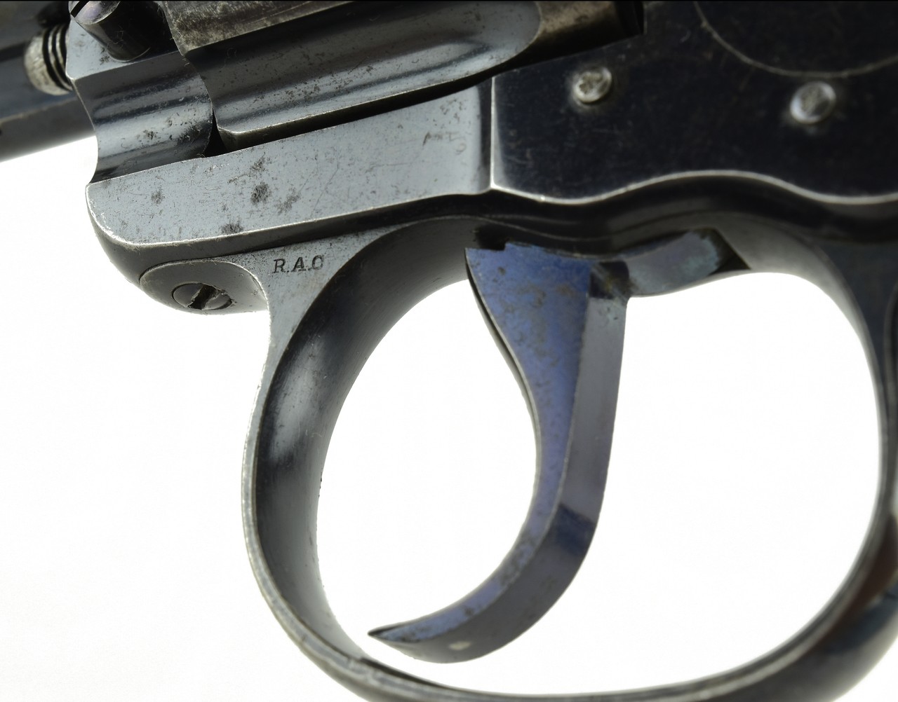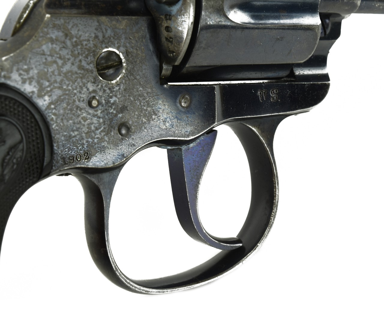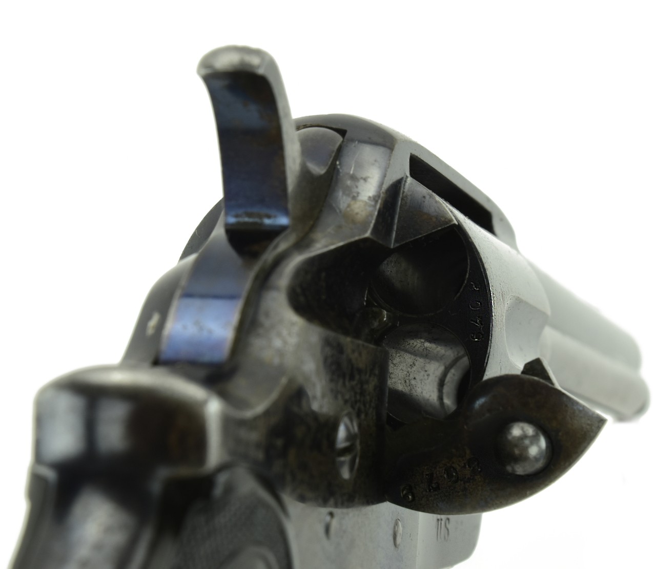 Colt 1902 Alaskan Model Revolver. .45 LC made in 1901. 75% of the original blue finish. Action locks up tight and works properly. Bore is excellent. The 1902s were issued to the U.S. Government and have various Inspectors markings. The differed from the 1878s by the enlarged trigger guards. Despite the collector’s term “Alaskan Model” these guns were not made for cold weather climates, they were issued entirely into the Philippines.