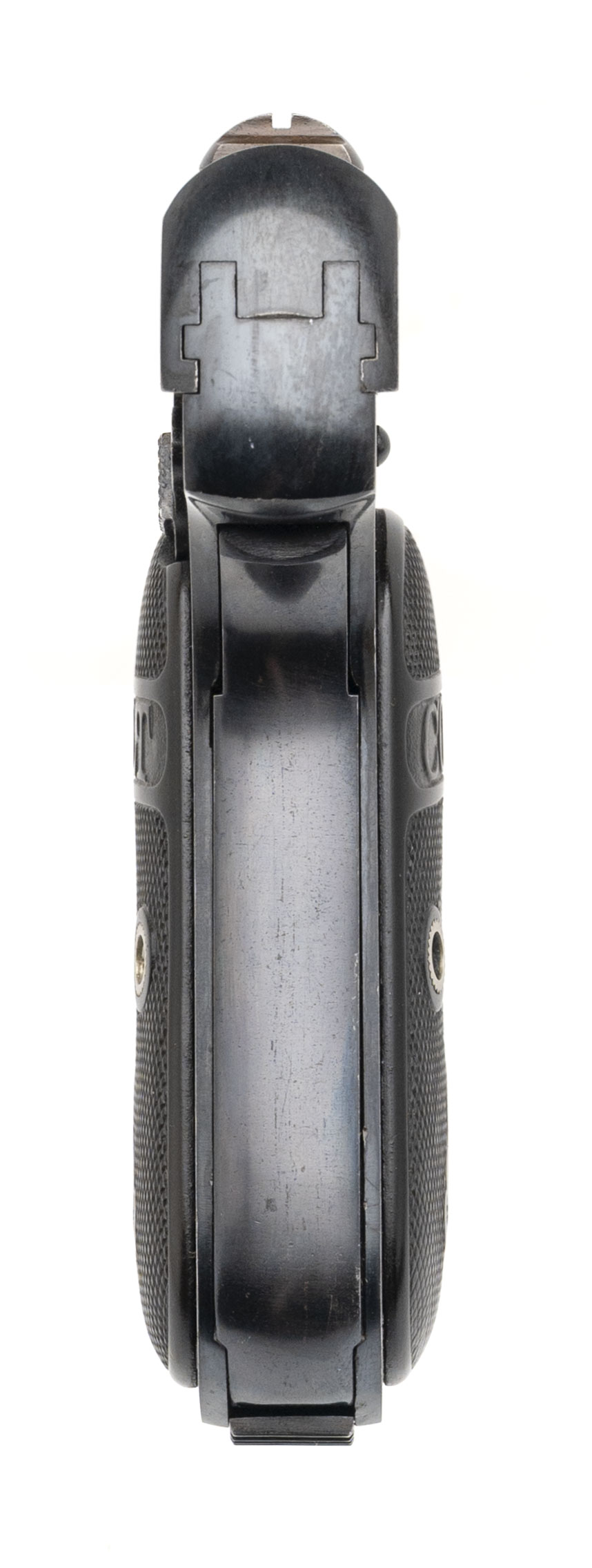SN: 475636 made in 1928. 32 ACP semi-auto pre-war hammerless pocket pistol with a 3.75" barrel, original Colt grips. Original bluing is in very good condition on the left side, the right side has soma patina and on the frame a drivers license number has been removed and cold blued. Action is smooth, in good working order, bore is good with strong rifling.