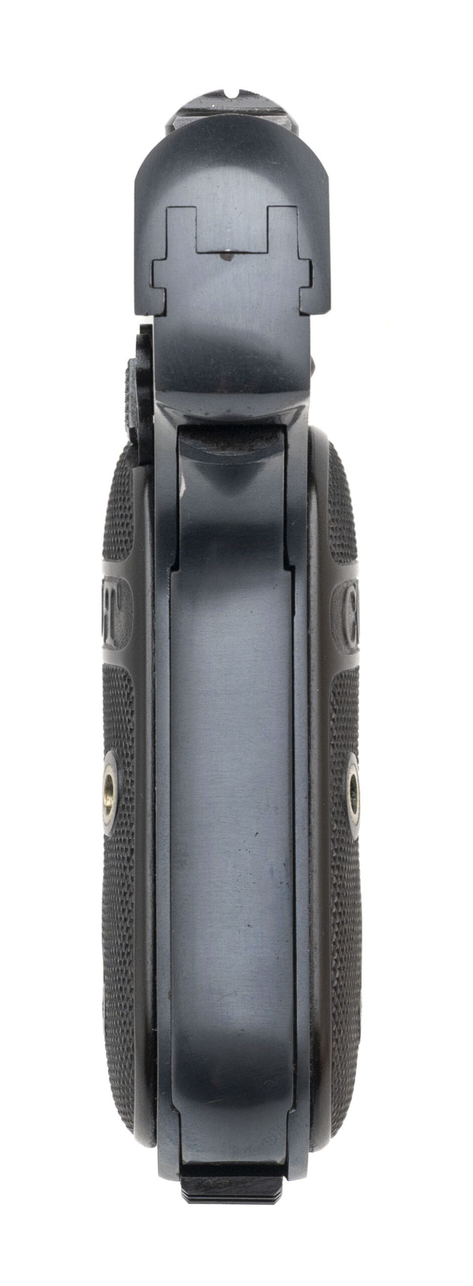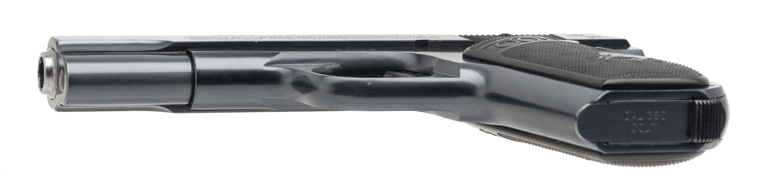 SN: 61389 made in 1923. 380 acp semi-auto hammerless pocket pistol with a 4" round barrel, iron sights, external extractor, grip safety, original COLT grips, two-tone magazine and original bluing. Overall in very good condition with only some light wear and handling marks and an excellent bore.