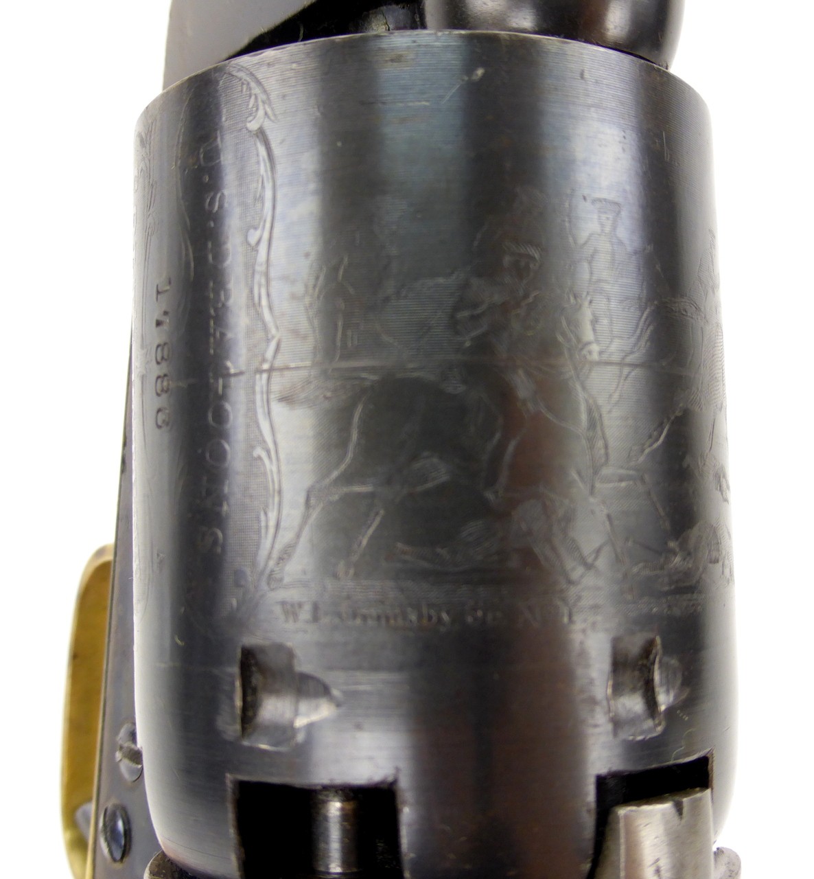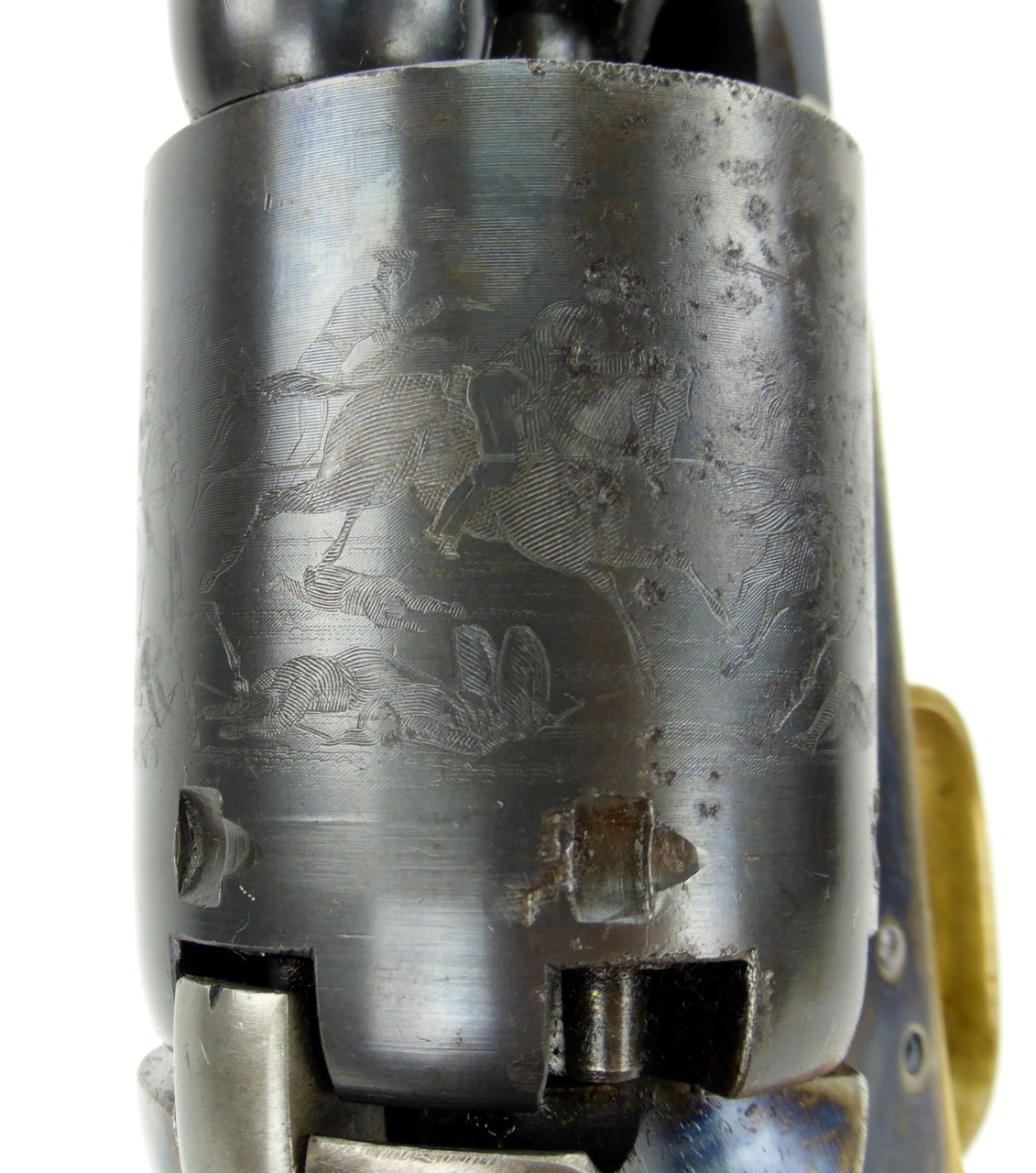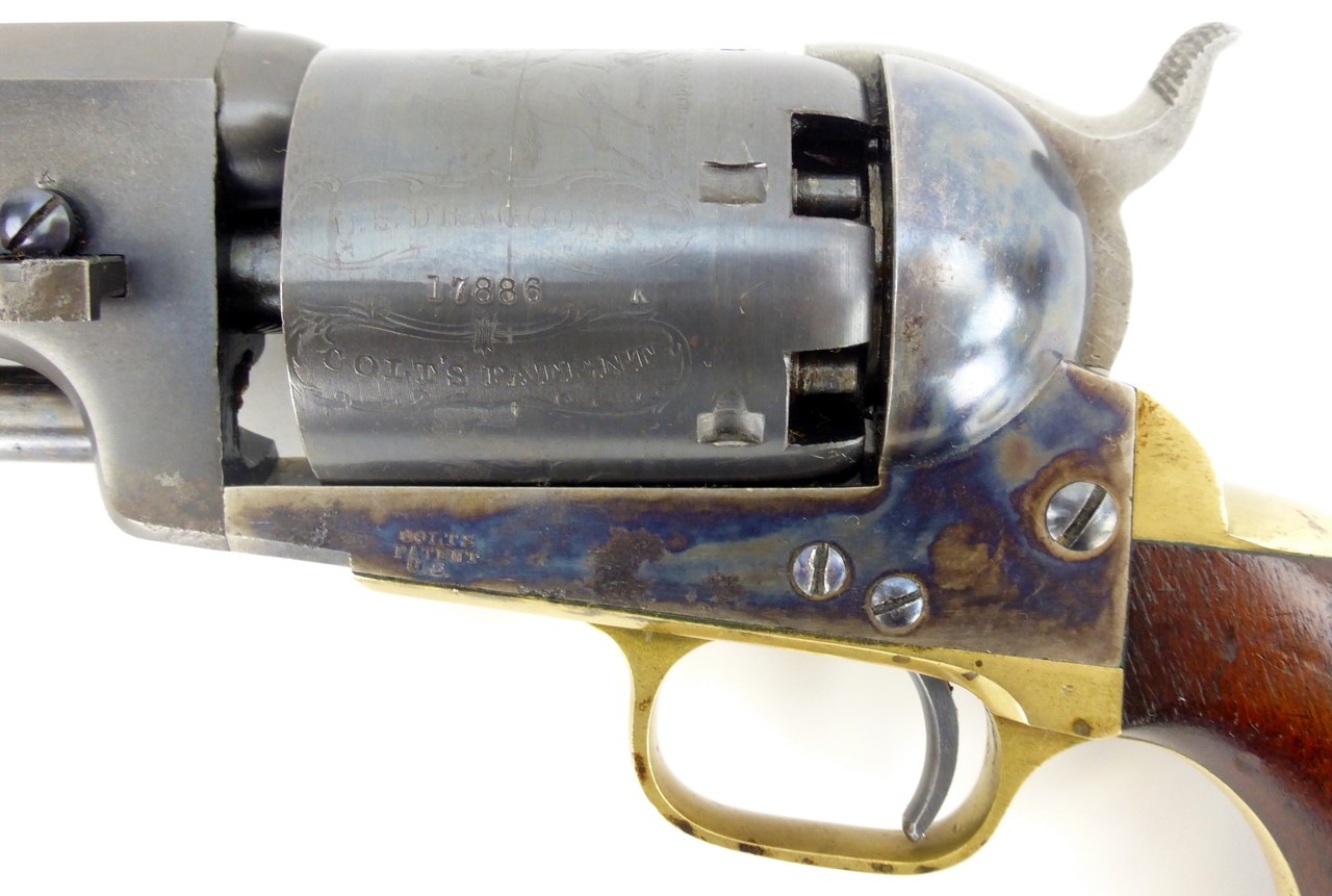 Colt 3rd Model Dragoon. Near mint Colt 3rd Model Dragoon revolver. This is the finest 3rd Model Dragoon we have owned! Made in 1858. This is about as good as it gets! All of the blue and all of the original bright case colors remain. All of the cylinder scene and the gun is matching! Grips are excellent. Impossible to improve upon!
