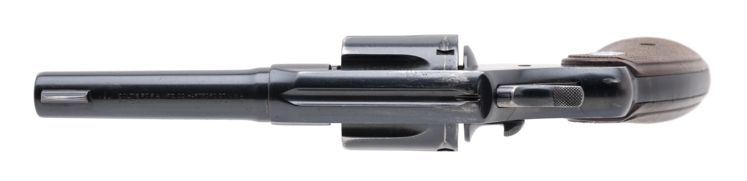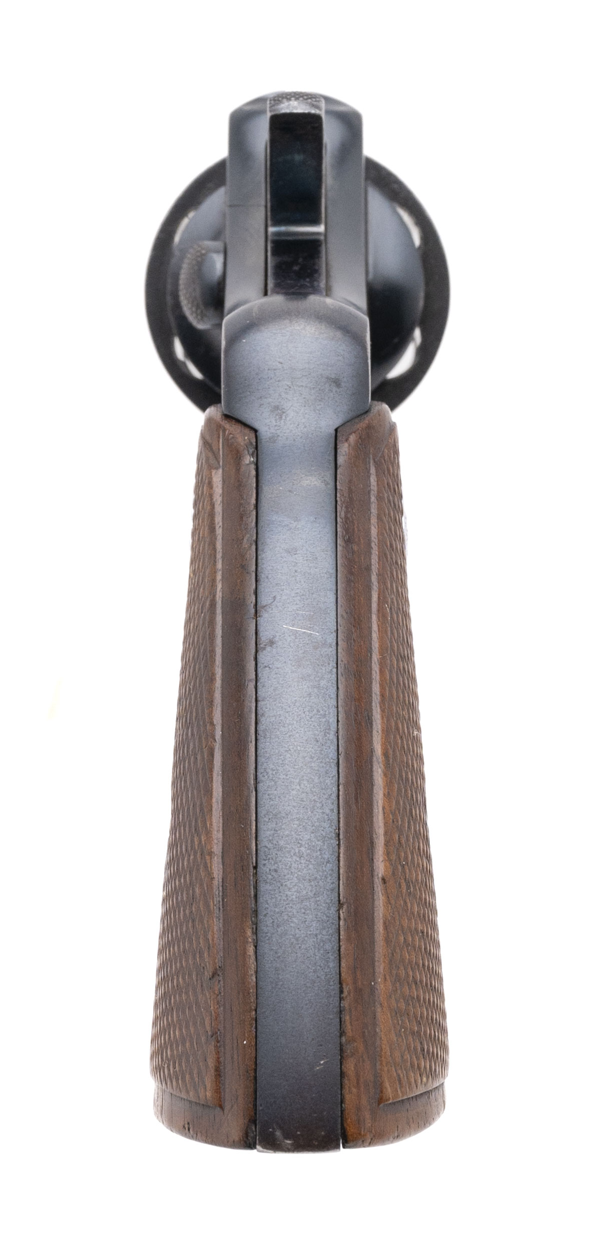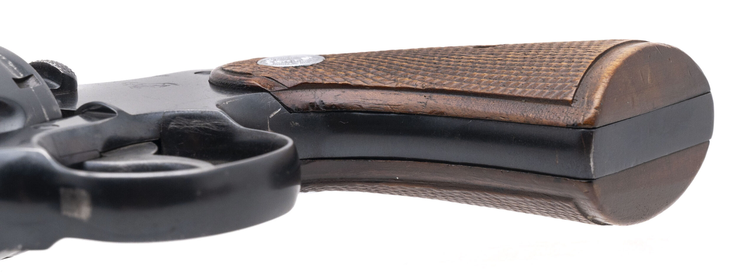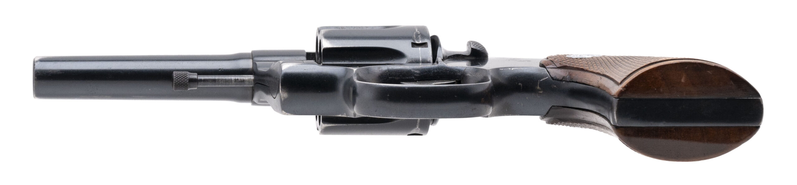 SN: 428530. Made in 1917, .38 Special with a 4" barrel. Bore is fair, bright with some pitting. DA service revolver. Has been reblued and has later style walnut grips. The metal shows some light pitting remaining, overall good condition.
