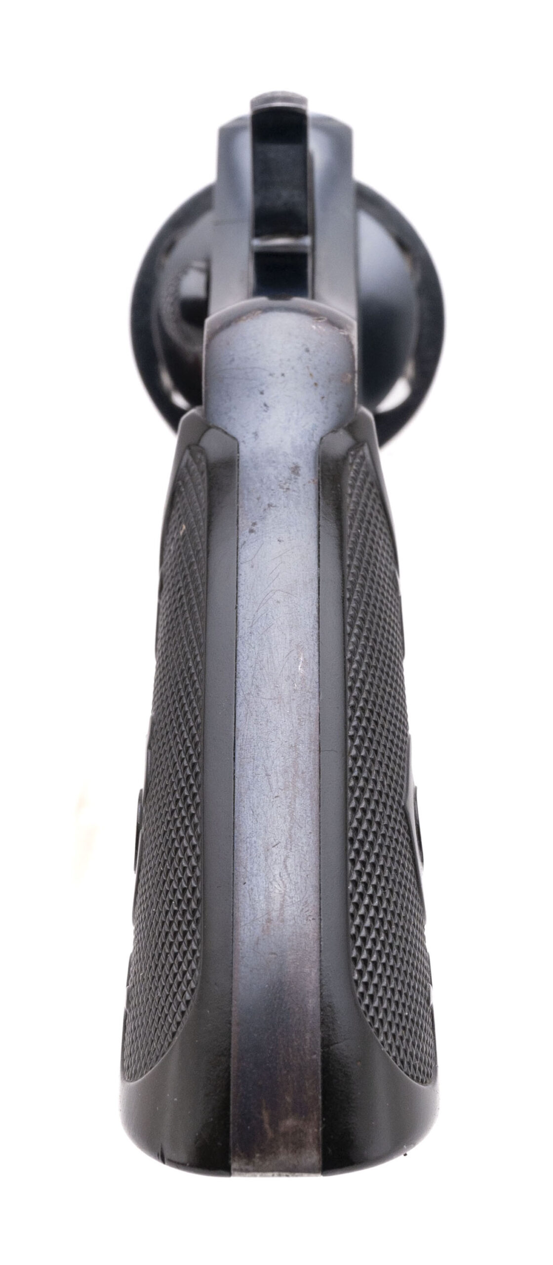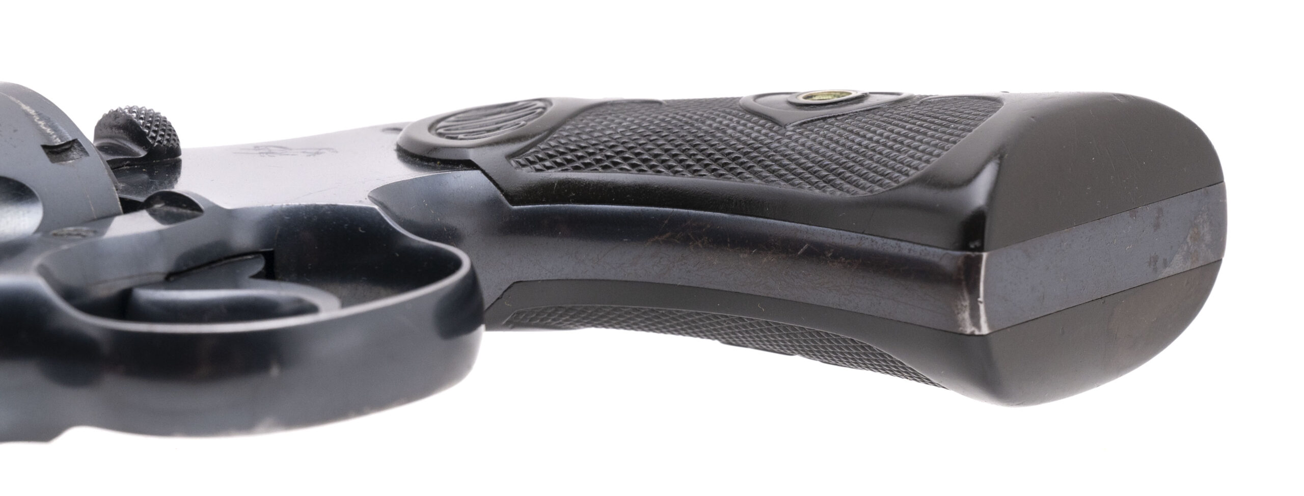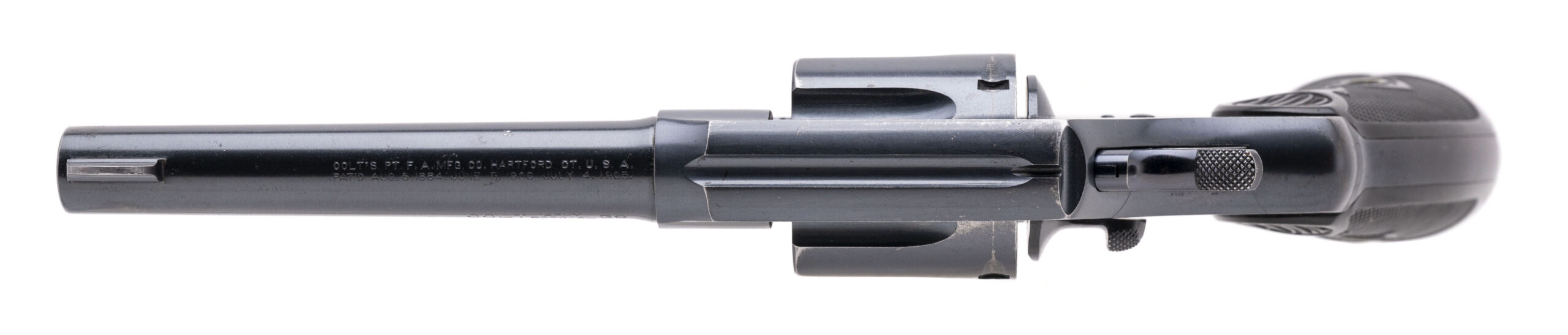 SN: 474655. made in 1922. .38 Special with a 5" barrel. Bore is bright with strong rifling. Pre-war double action Colt revolver. Blue finish is in very good condition with expected wear near the muzzle, and light handling wear on the grip frame. Colt grips are in very good condition with strong checkering. Action locks up tight. Overall very good condition.