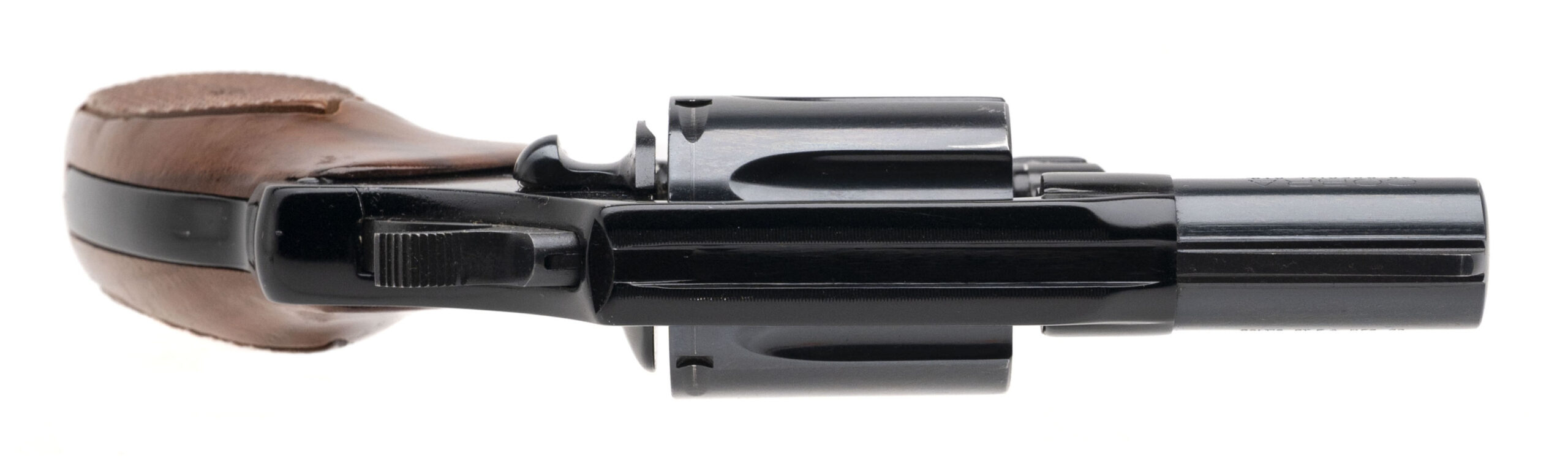 SN: M99142. 1976 production, .38 Special with a 2" barrel. Bore is bright with strong rifling. Blued alloy frame snubnose snake gin with checkered wood grips. Finish has a few minor nicks but the overall condition is very good.