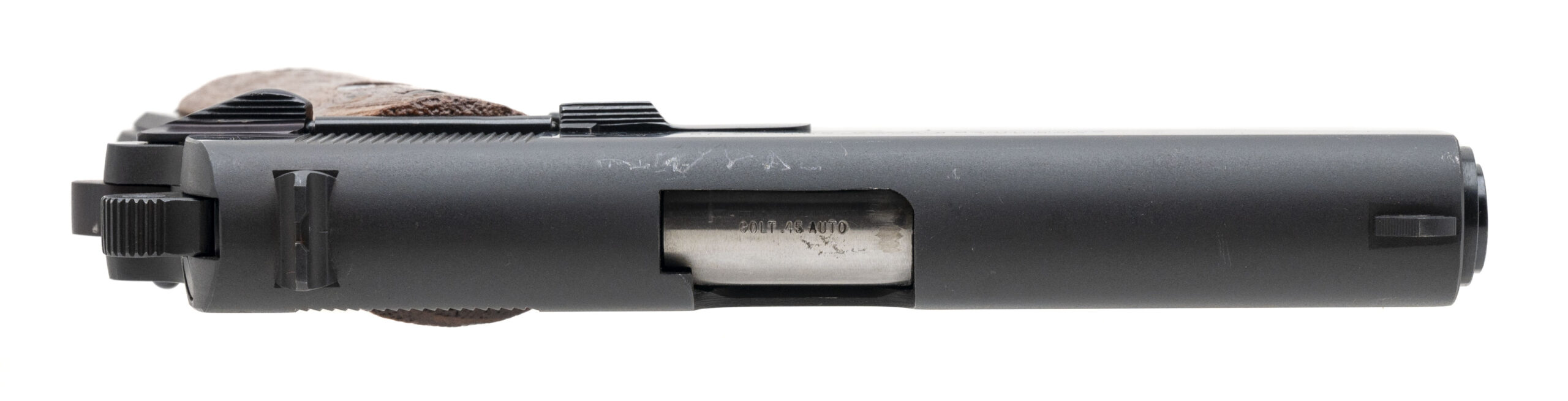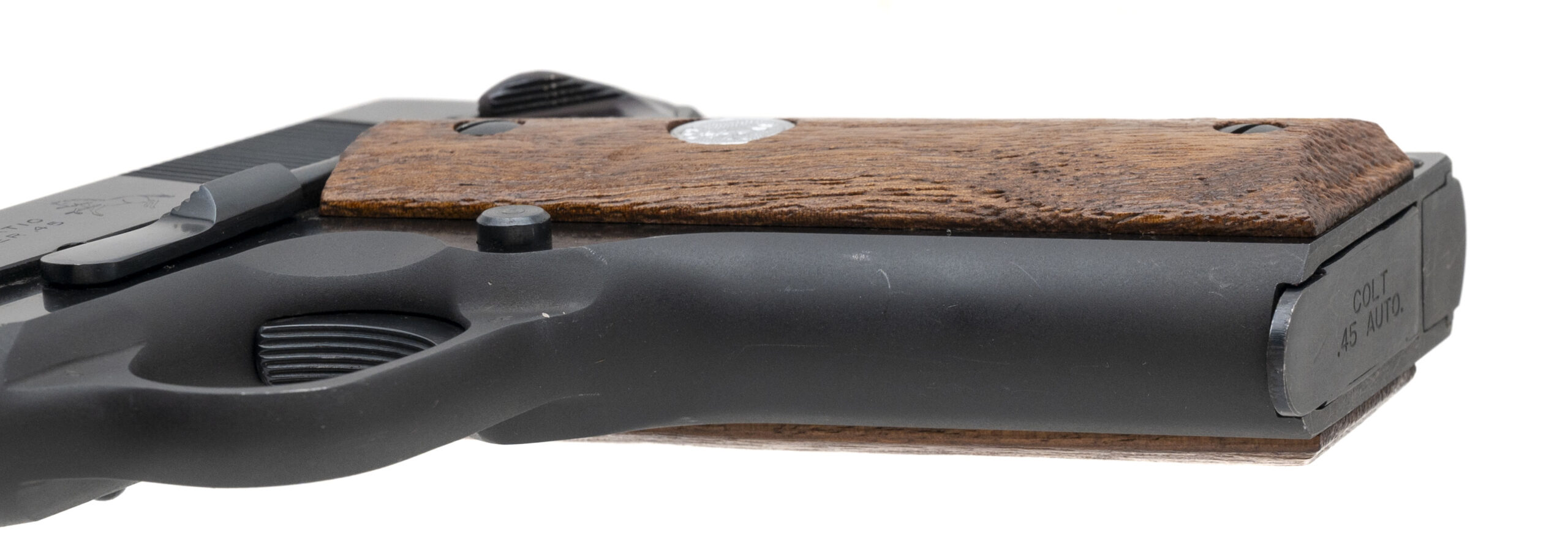 SN: 70BS22899. Made in 1974, .45 Auto with a 4.25" barrel. Bore is bright with strong rifling. Classic Commander size 1911. Blued finish is in very good condition. Wood grips are in very good condition. Very good overall condition.