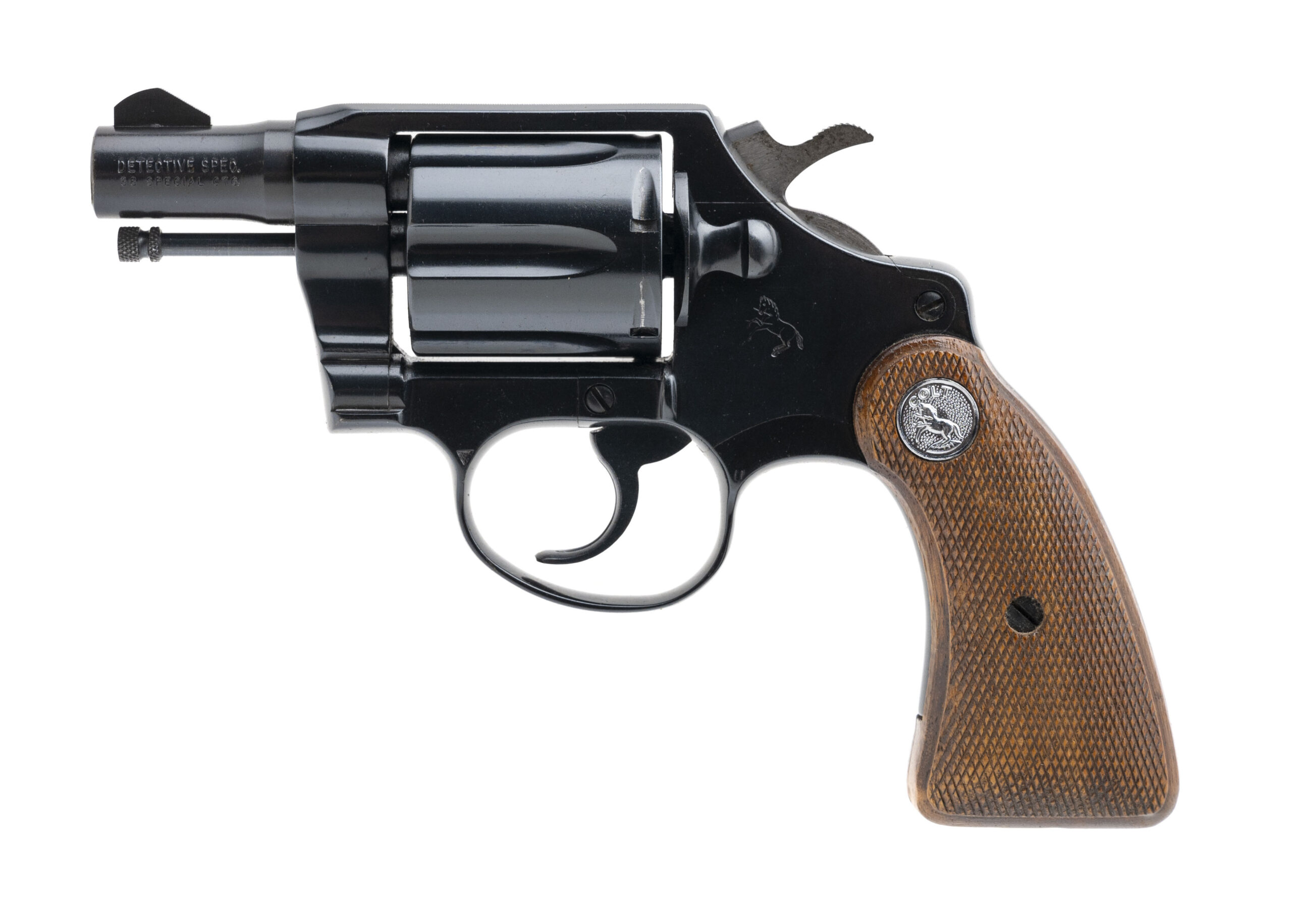 SN: B03495. Made in 1970. .38 Special with a 2" barrel. Bore is bright with strong rifling. Colt snubnose double action revolver with near excellent blue finish. Checkered wood grips are in very good condition with typical handling wear noted. Overall very good condition.