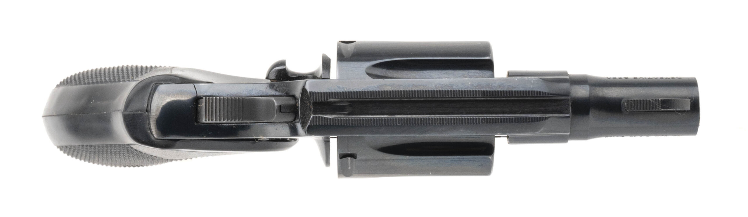 SN: B32962. Snub-nose revolver made by Colt in 1971. 2" barrel chambered for .38 Special. Great overall condition with small handling marks in the dark blue finish. Bore is excellent. Replacement Pachmayr Presentation/Compac grip. Comes with holster.