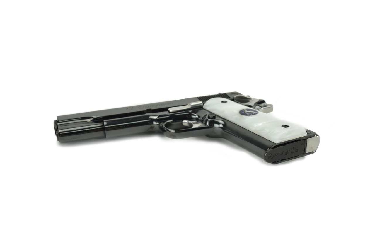 Colt El Campeon .38 Super caliber pistol. Rare “El Campeon” limited edition made for Lew Horton. Near excellent condition with light wear.