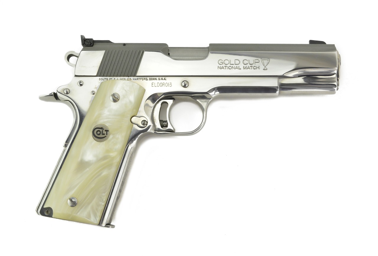 Rare Limited Edition “El Dorado” .38 Super Gold Cup with Ultimate Bright Stainless finish. This is one of the Lew Horton limited edition “El” series of .38 Super pistols made in the 1990’s. Only 750 were made in 1992. A very desirable Colt .38 Super, in mint condition with original box.