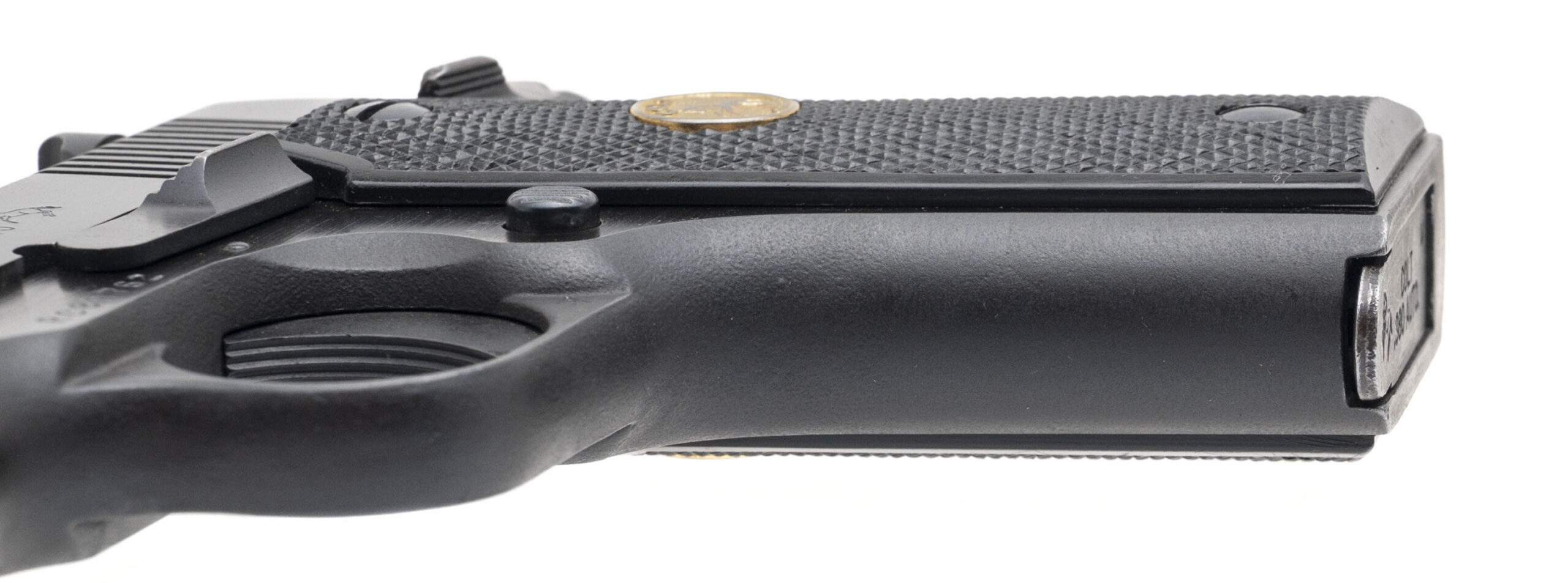 SN: RC89762. Made in 1987, .380 ACP with a 3.25" barrel. Bore is excellent. Steel frame carry pistol with a manual thumb-safety, blued finish, and checkered medallion polymer grips. Finish shows light marks. Overall condition is very good.