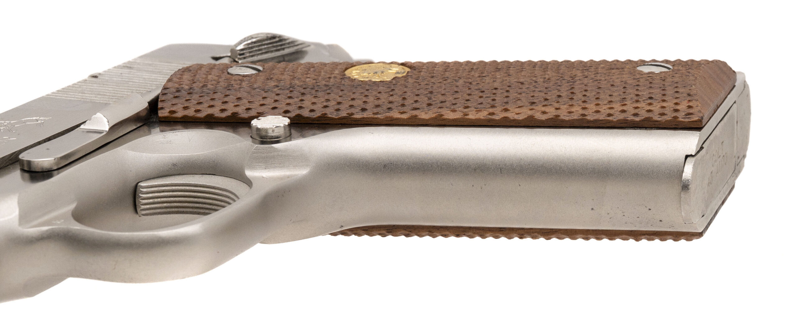 SN: 38467G70. Made in 1977, .45 ACP with a 5" barrel. Original Series 70 1911 with factory bright nickel plated finish. Has some light speckling on the slide, overall very good condition.