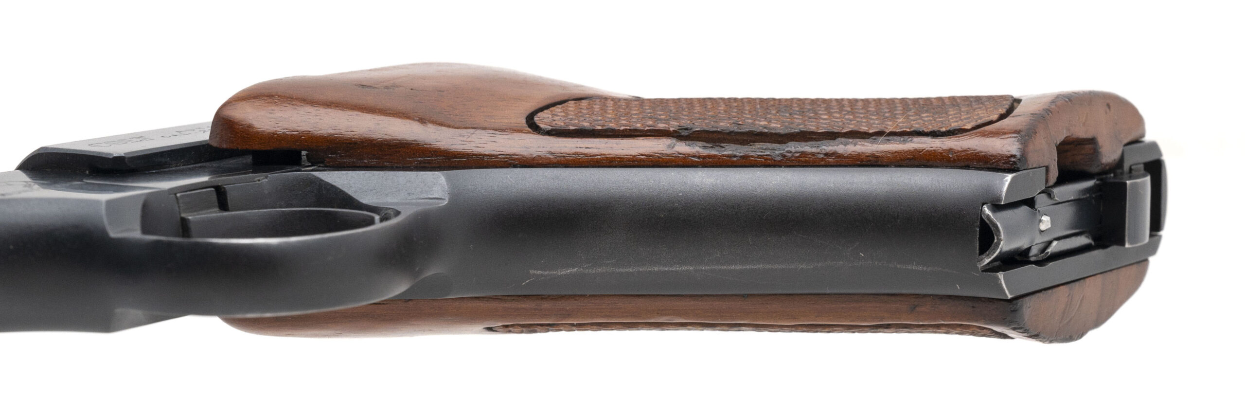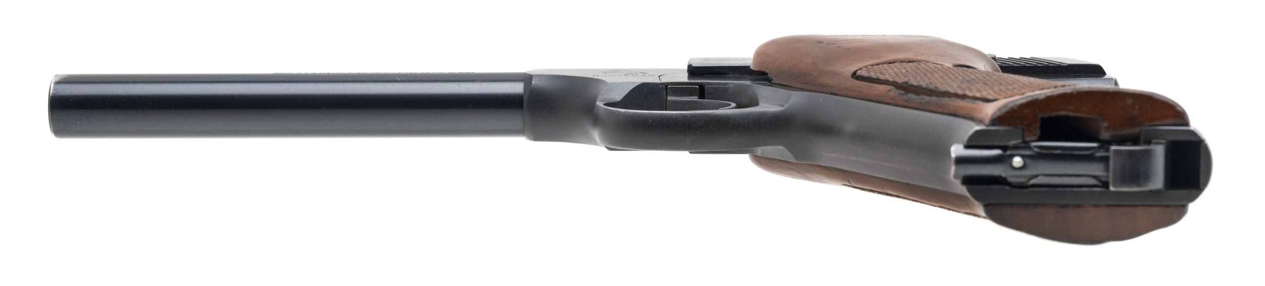 SN: 091088S. Made in 1975, .22LR with a 6" barrel. Semi-auto plinker pistol. Has about 95% original blue finish with light wear. The grips show some marks and wear. Overall very good condition.