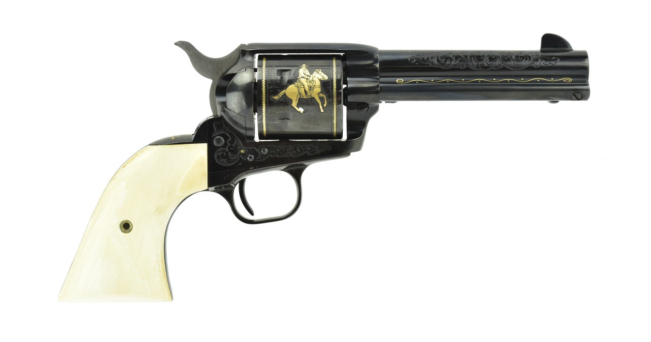 Colt “John Wayne” Commemorative. Colt Single Action Army “John Wayne” commemorative .45 LC caliber revolver. 1982 issue, with case, box and shipping carton.