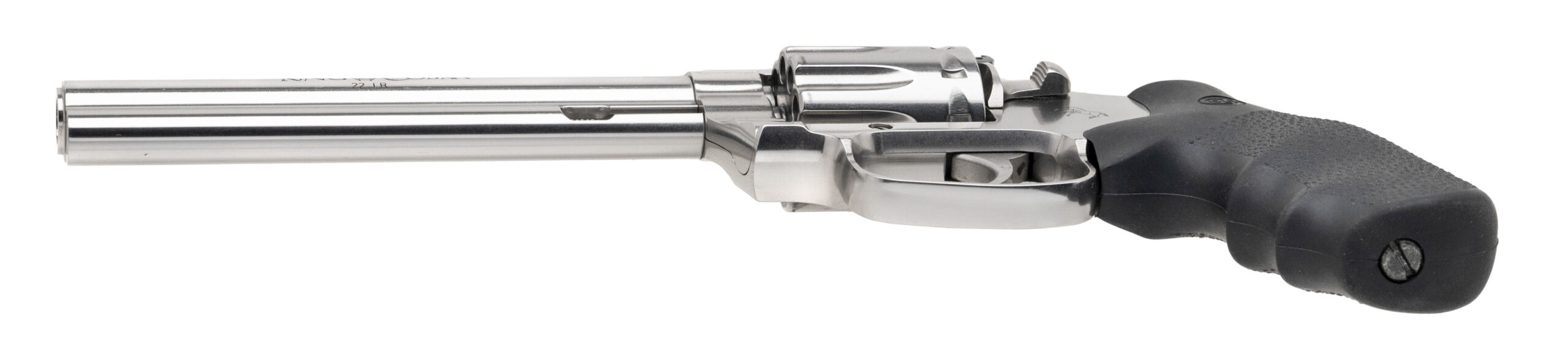 SN: RA381234. Modern production, .22 with a 6" vent rib barrel. Stainless steel rimfire snake gun with rubber grips. Excellent condition with case.