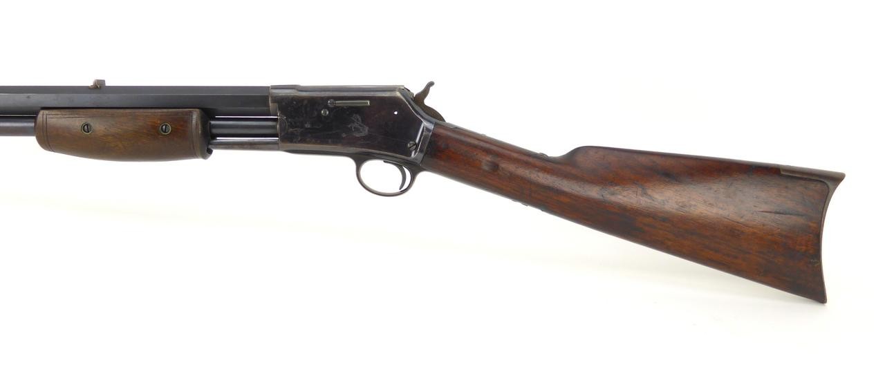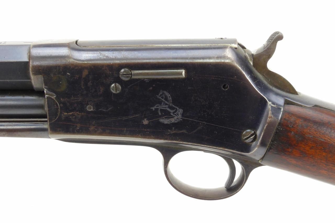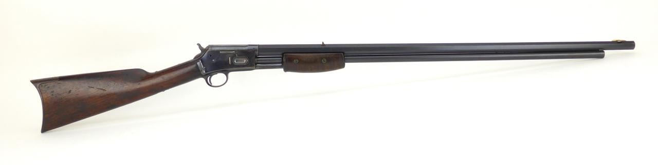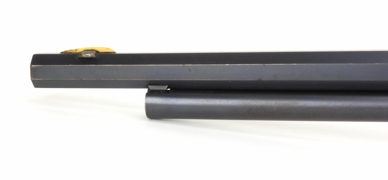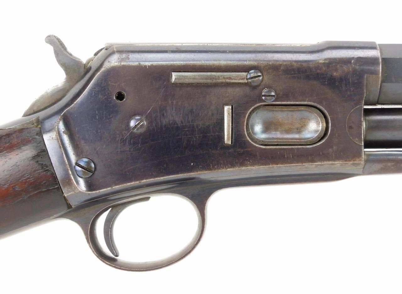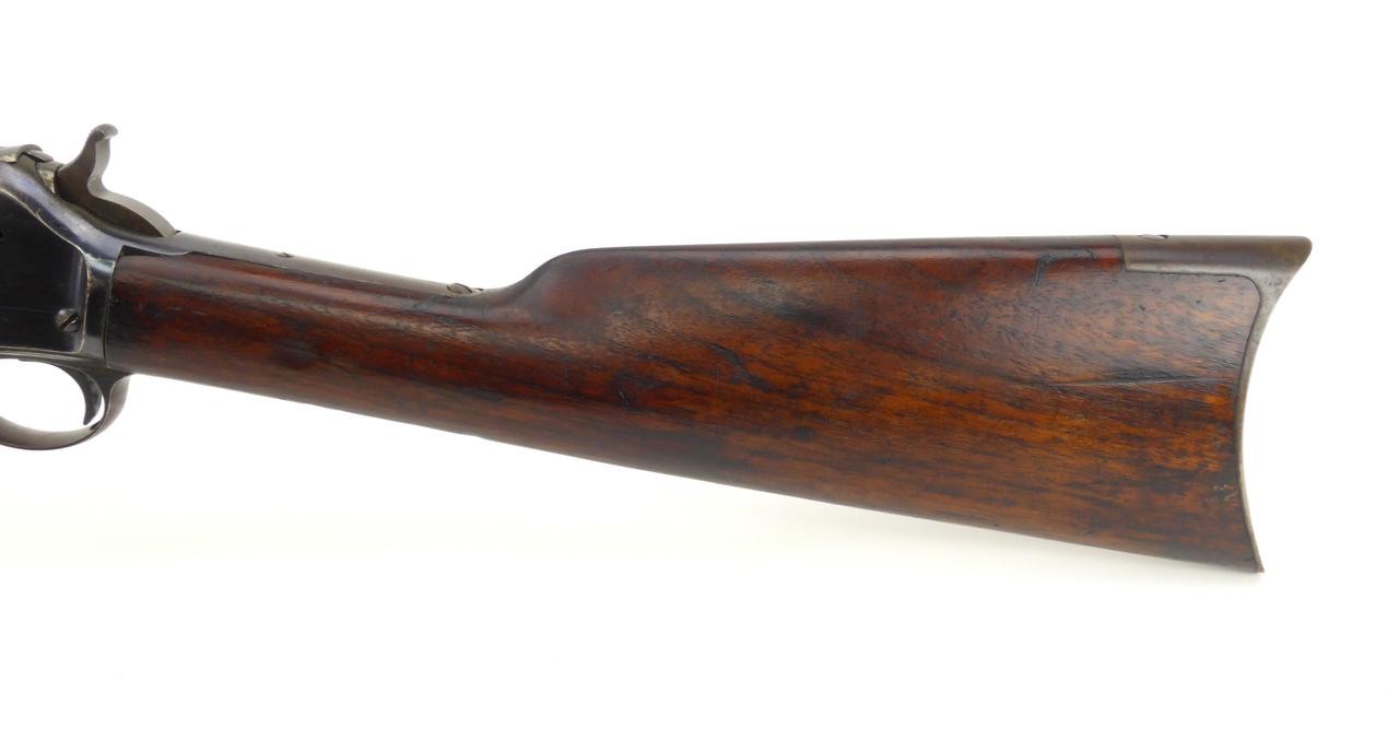 Colt Lightning .32-20 caliber rifle. Colt Lighting rifle with 30” Octagonal barrel in .32-20 caliber. About 85% beautiful bright blue receiver. Barrel and tube have high percentage of blue. Tang and butt plate have a patina look. Stock has not been cleaned but has use dings. Bore has period “CF” engraved on top of receiver. Manufactured 1898.
