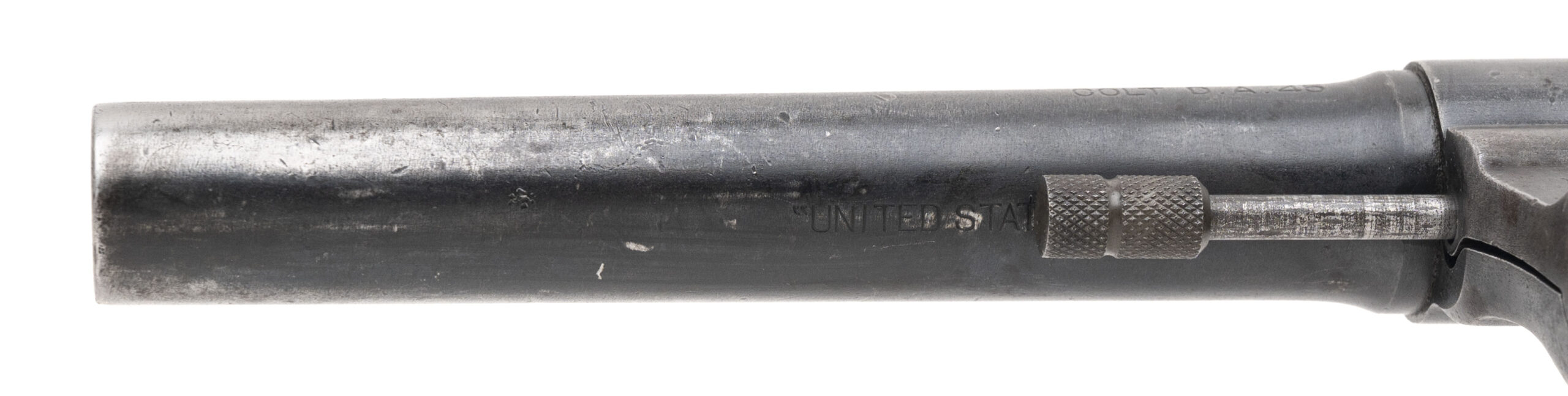SN: 28146. Made in January 1918 with a 5.5-inch barrel chambered for the .45 ACP cartridge. Overall condition is good with original factory finish that has matured into an aged dull patina with a few isolated spots of oxidation. The bore is bright & shiny with strong visible rifling.