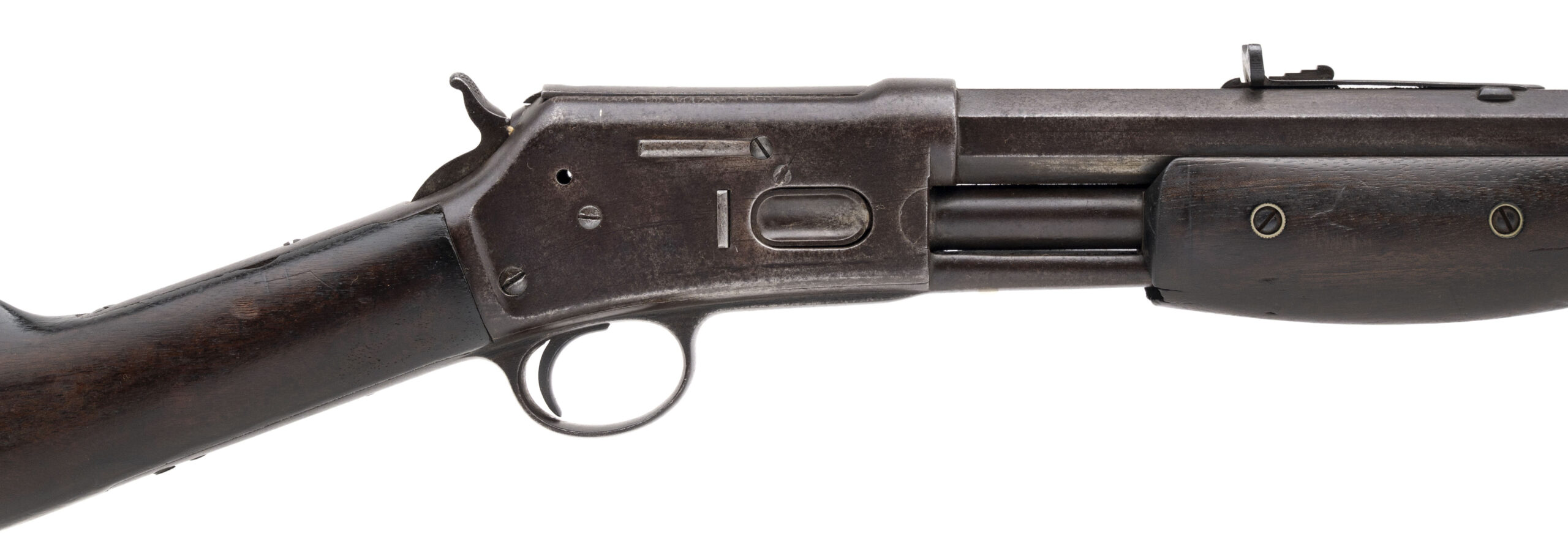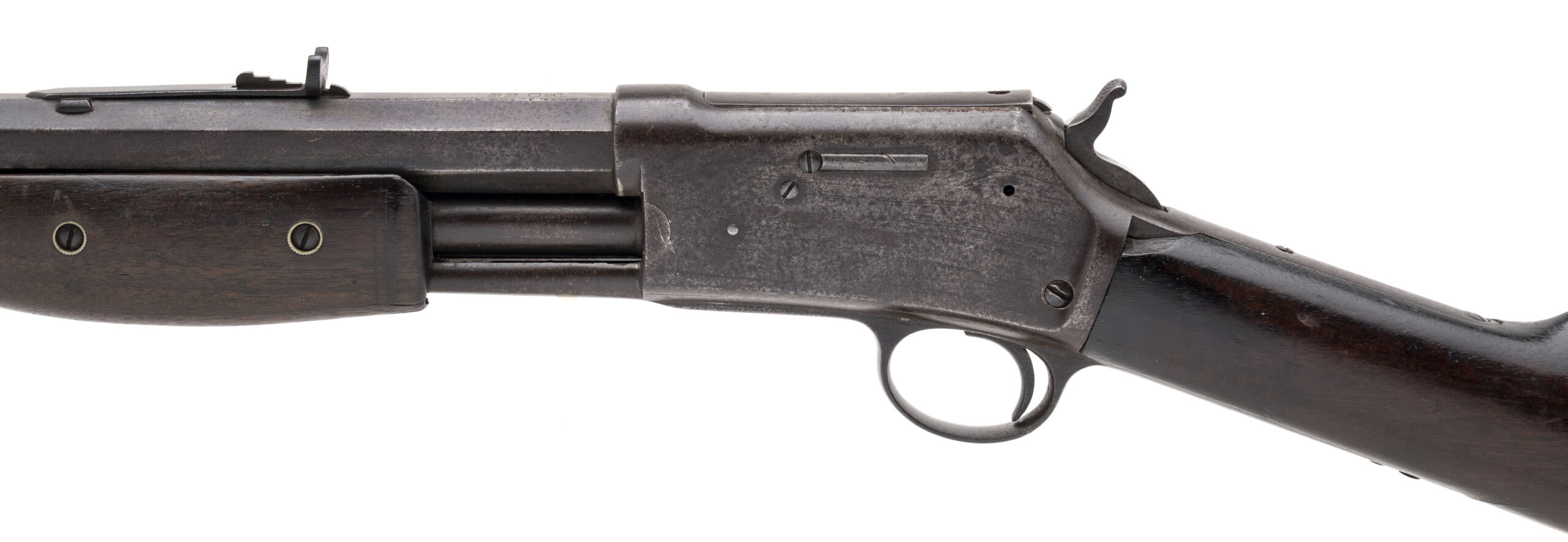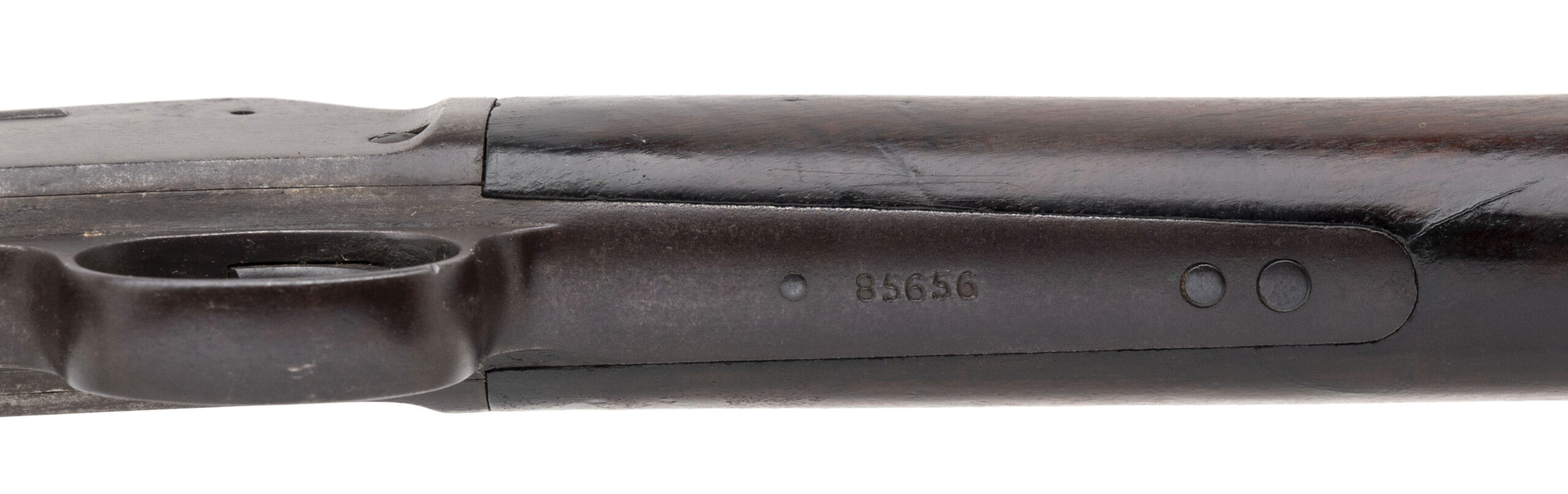 Serial number 85656. Made in 1899. 32-20 caliber with a 26” barrel. The barrel has a dark brown patina. The wood is very good. This gun functions, but does not lock into battery.