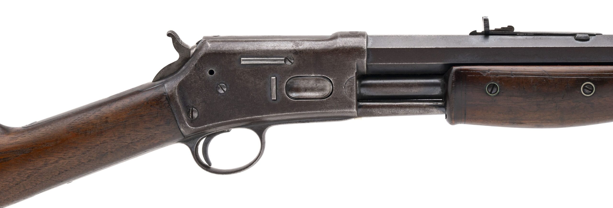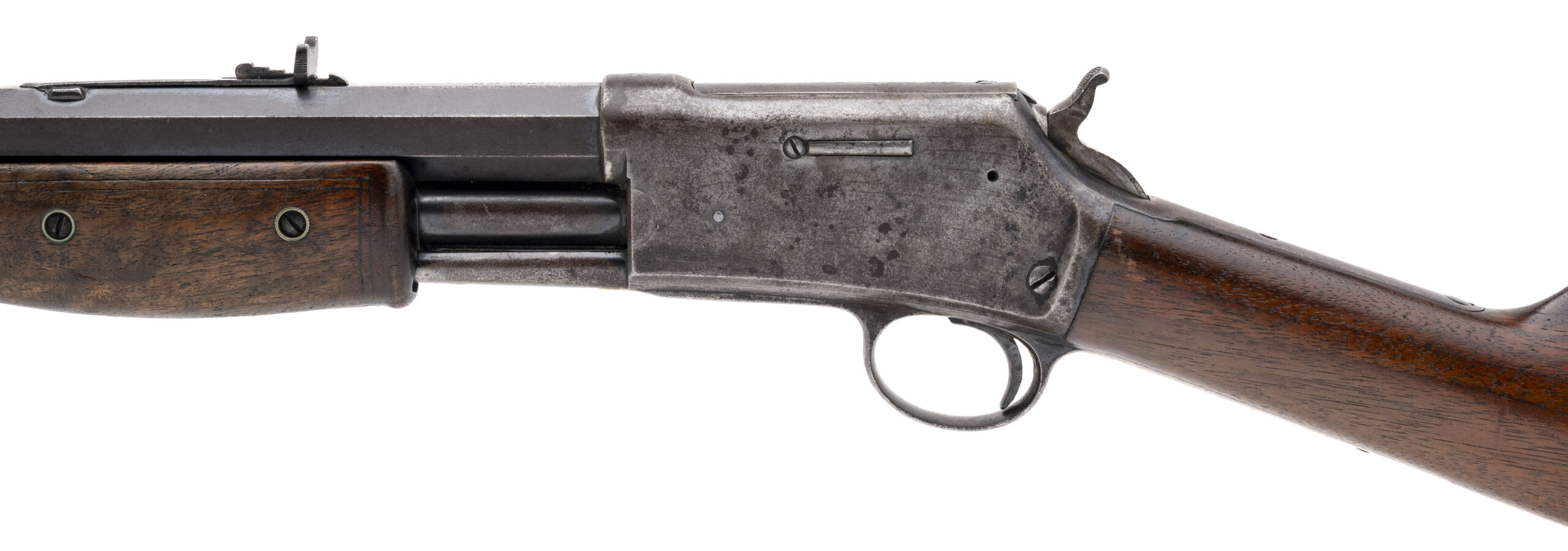 Serial number 80427. Made in 1896. 38-40 caliber with a plum colored patina on the barrel with blue in protected areas. The stock is very good. The action works perfectly. The frame has a light gray patina. The action woks perfectly.