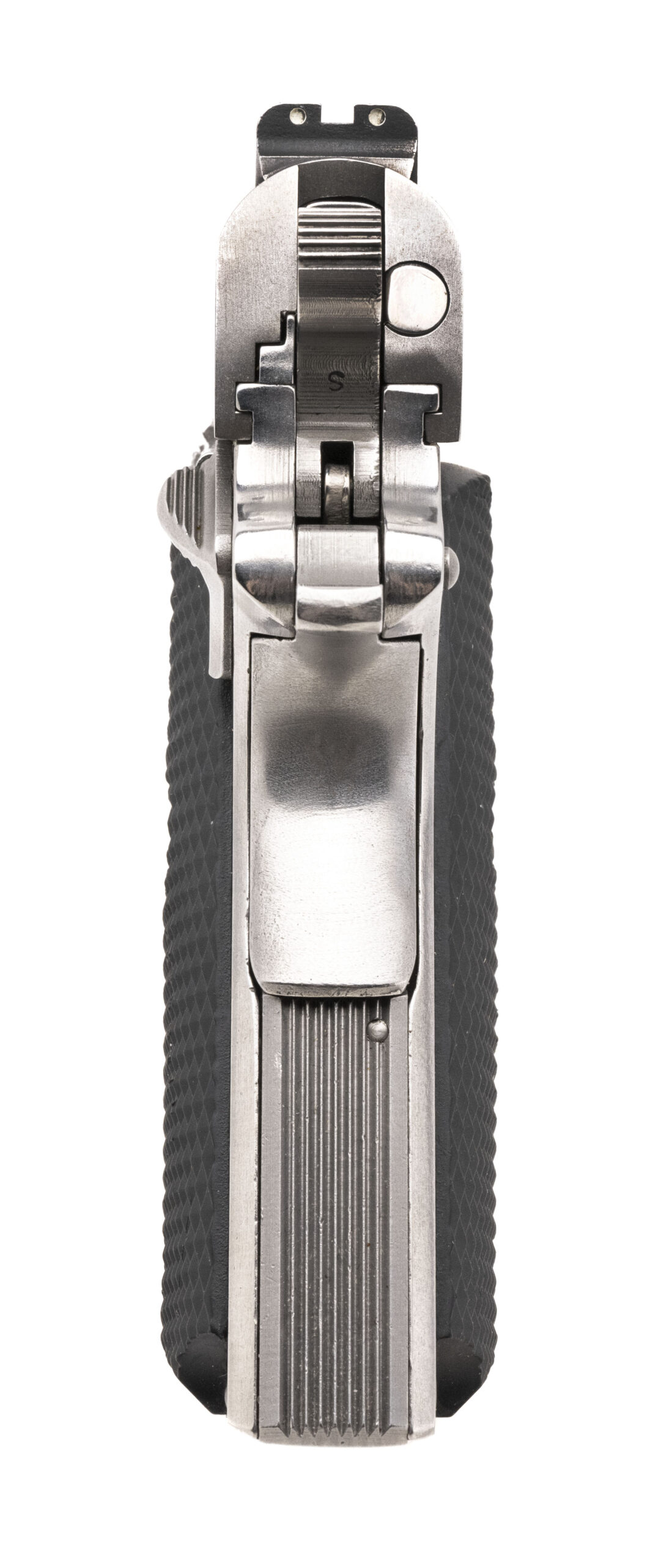 SN: SF13501. Made in 1986, .45 Auto with a 3.25" barrel. Bore is bright with strong rifling. Officer size stainless steel 1911 pistol. Overall condition is very good. Comes with box and two extra magazines.