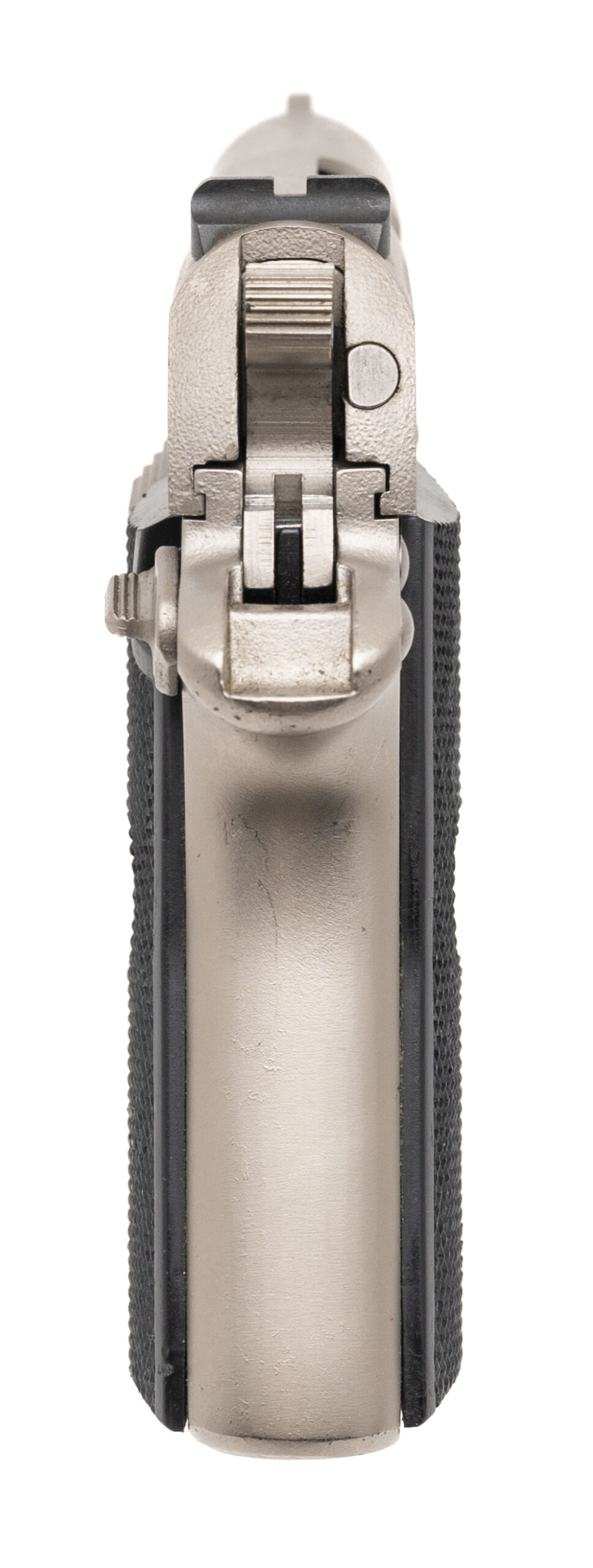 SN: MU22484. Mad in 1987, .380 ACP with a 2.75" barrel. Bore is very good. Semi-auto pocket pistol with a manual thumb-safety, satin nickel frame, and checkered medallion wood grips. Metal shows minor handling marks. Overall condition is very good.