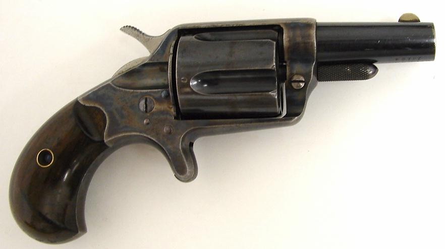 Colt New Line .38 caliber revolver with perfect etched barrel, bright case colored frame, excellent grips and beautiful blue. Great condition case colored New Line!