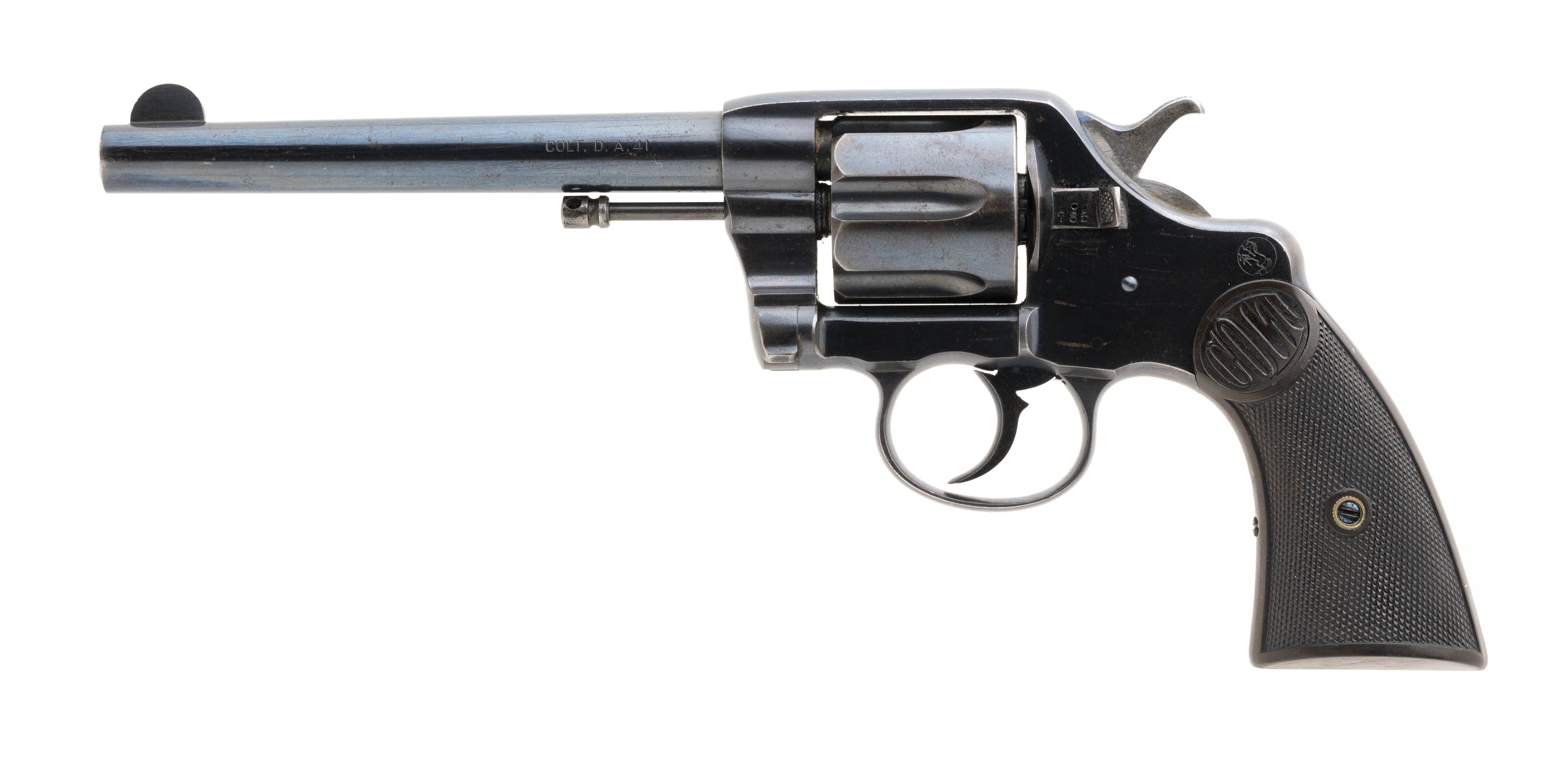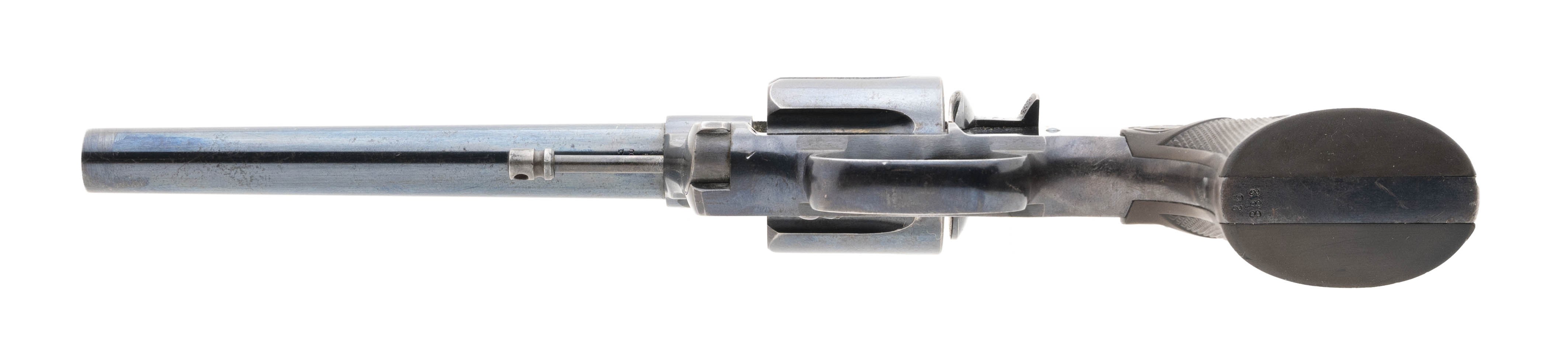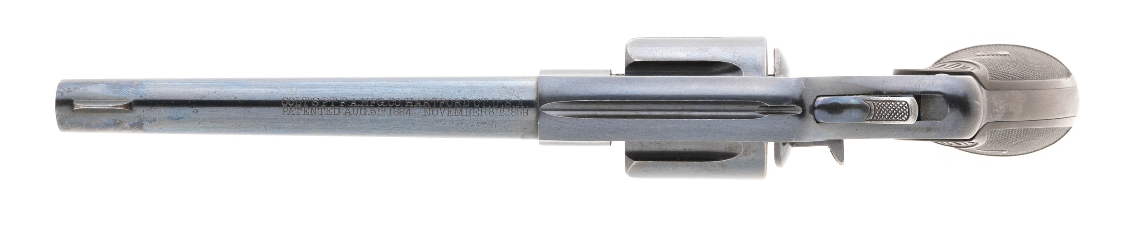This 41 Long or Short Colt New Navy Model of 1889 is circa 1893. The 6" barrel has a fine bore with bright rifling with a couple of spots in the grooves. The gun retains approx. 95% bright Colt blue with grip strap and cylinder fading and light edge wear. While this is a true 1889 model, it has the 1892 style frame modifications with the cut outs for the 1892 hand and locking bolt which are not used on this pistol. The checkered hard rubber grips, with the oval COLT at the top, are excellent with no chips or cracks. The action functions correctly. One rarely finds a New Navy Model 1889 revolver in this condition. Most have little or no finish remaining. Don't miss this fine example!