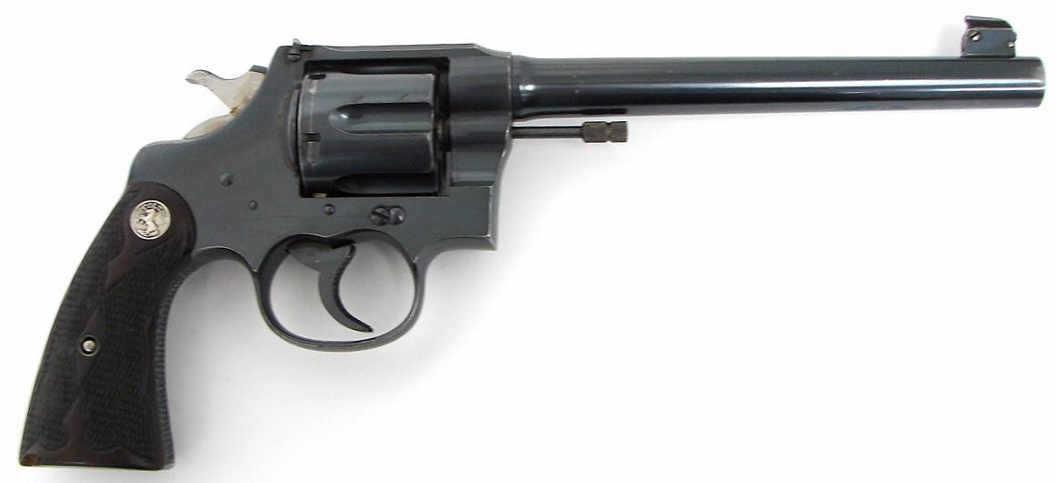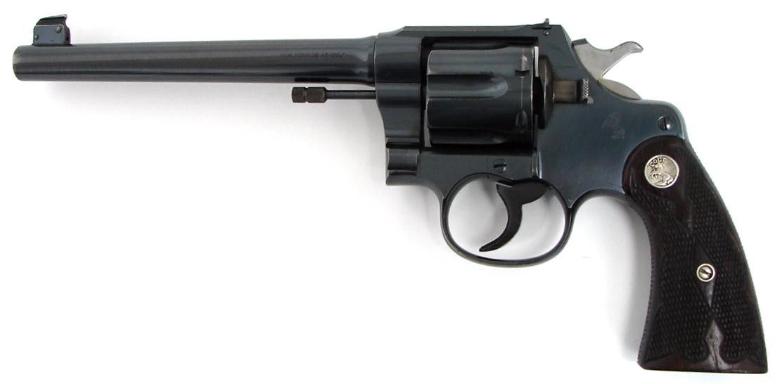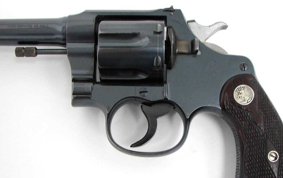 Colt New Service .45 Colt caliber revolver. Manufactured 1926 in .45 Long Colt caliber Flat Top Target model with medallion Fle (C6367)