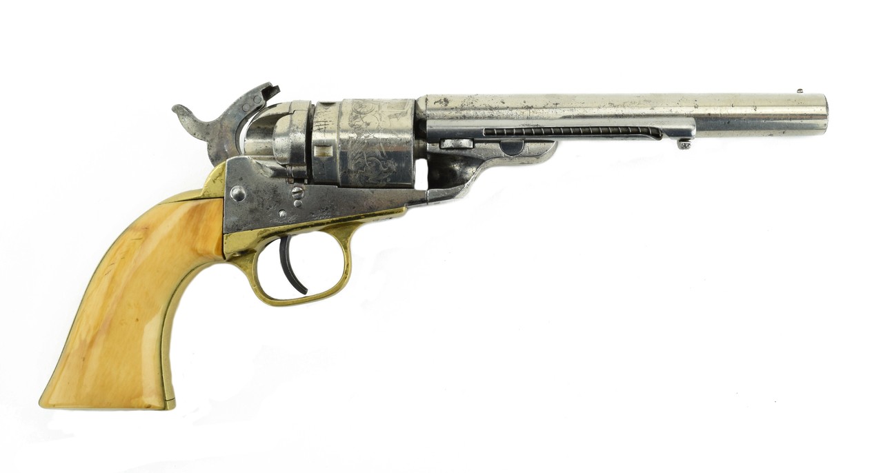 Colt Pocket Navy Conversion. Very fine example. Made circa 1870. Metal has 85% of the original finish. Grips are excellent. Cylinder scene is excellent. Very fine gun.