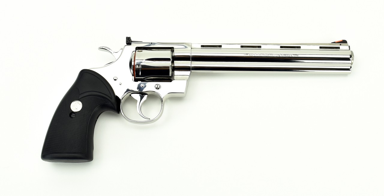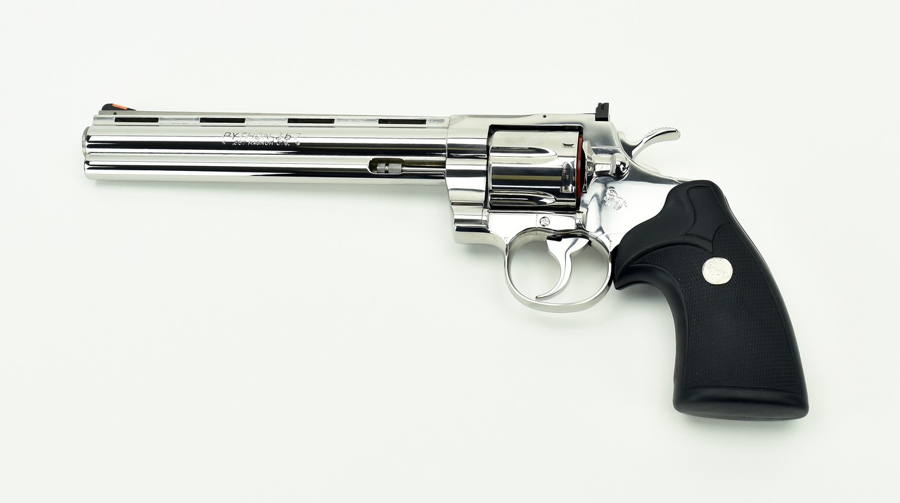 Colt Python .357 Mag caliber revolver. 8” bright stainless model, made in 1995. Mint condition with box and factory letter.