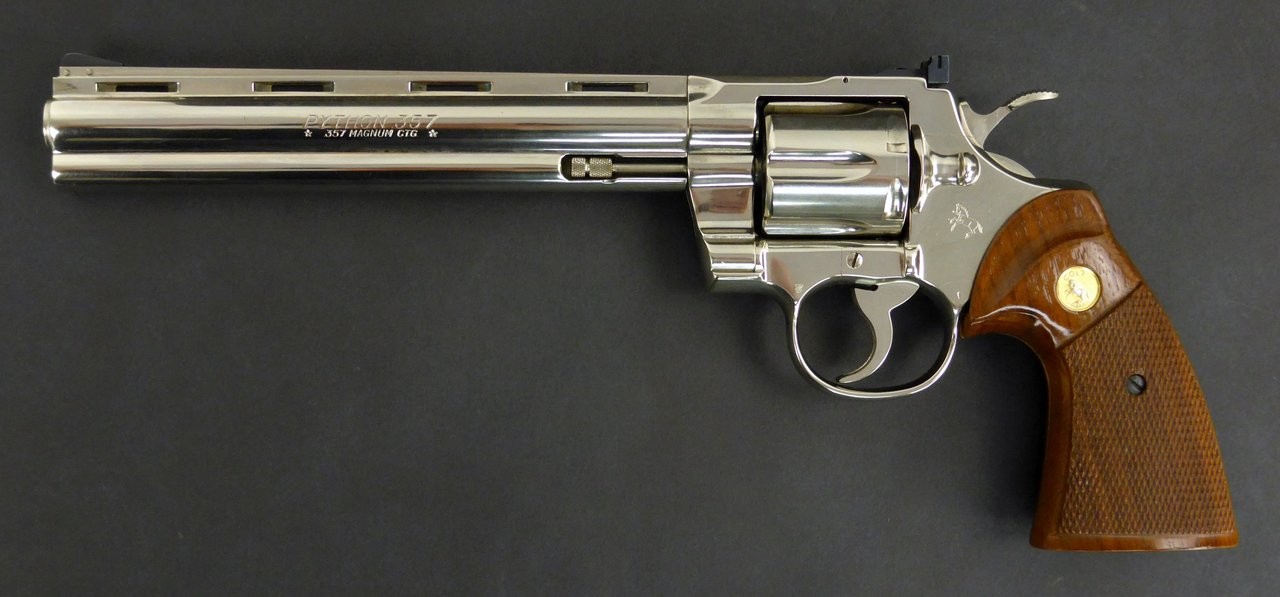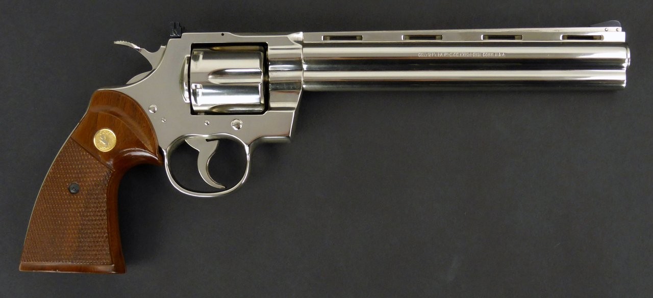 Colt Python .357 Magnum caliber revolver. 8” nickel model in excellent condition. Made in 1980.