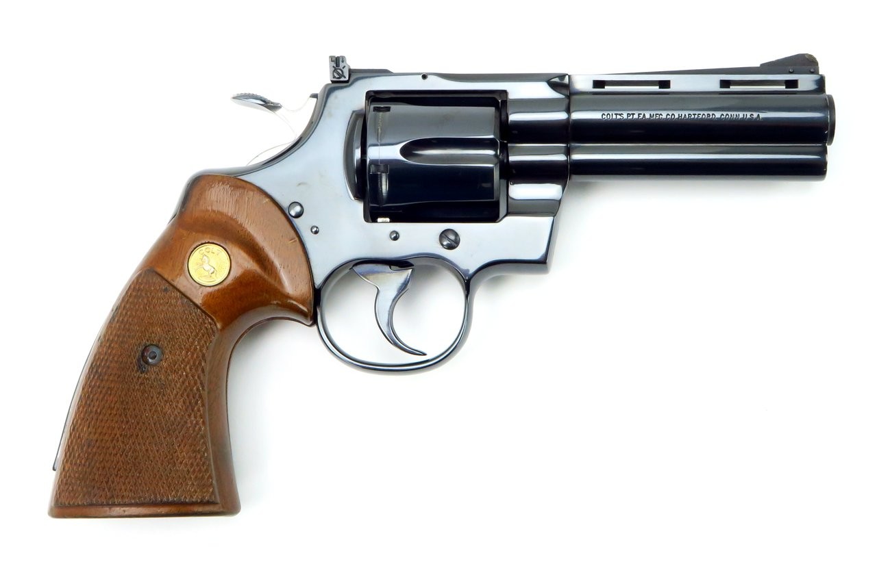 Colt Python .357 Magnum caliber revolver. 4” blue model made in 1977 in excellent overall condition.